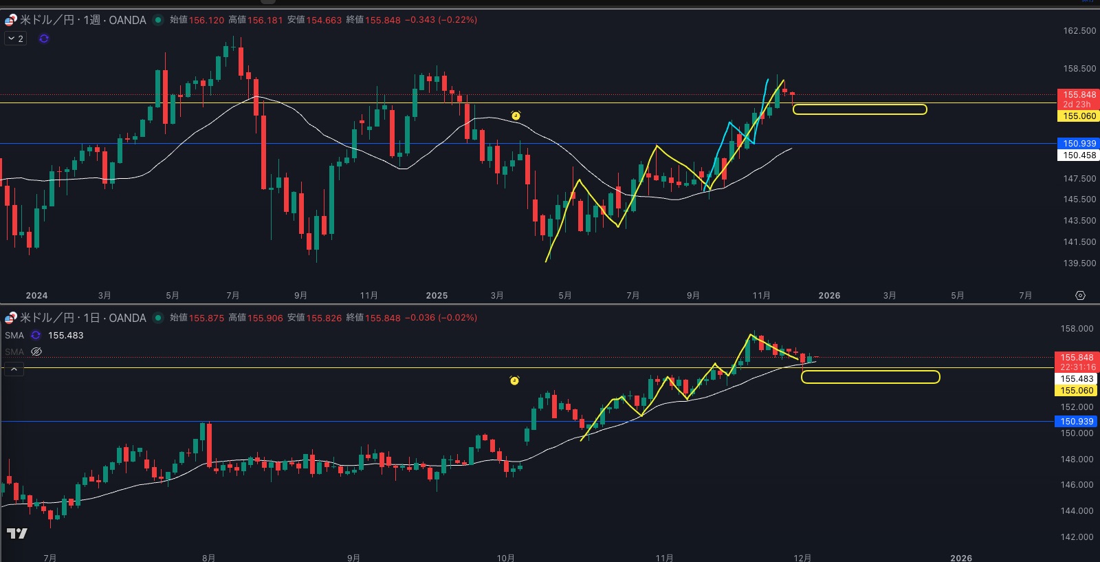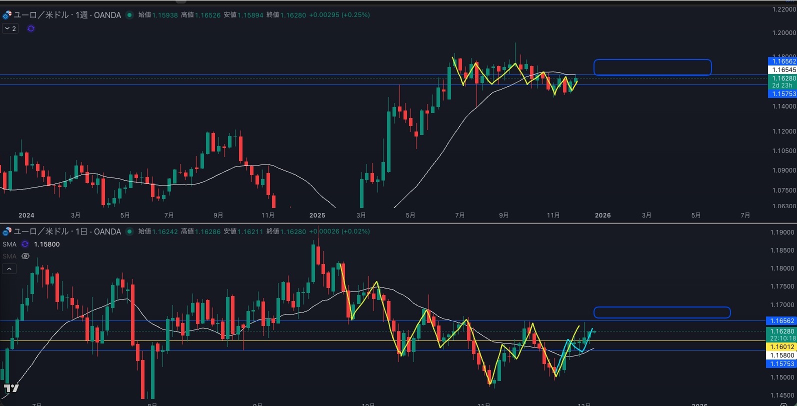 ここは落ちてきたところを狙っていきたい - 上は週足のSMA週足のレジスタンス