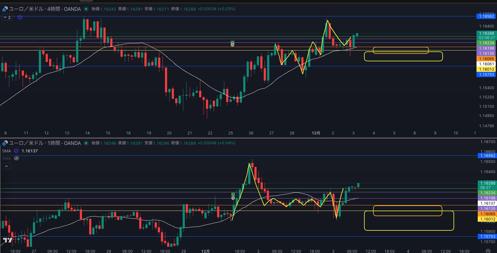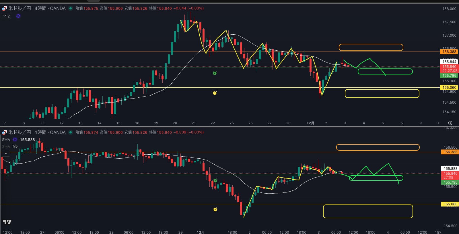 2番を付けてから1時間下落トレンドスタート - 4時間SMAが支えてくる可能性があり神経質なトレードになりそう