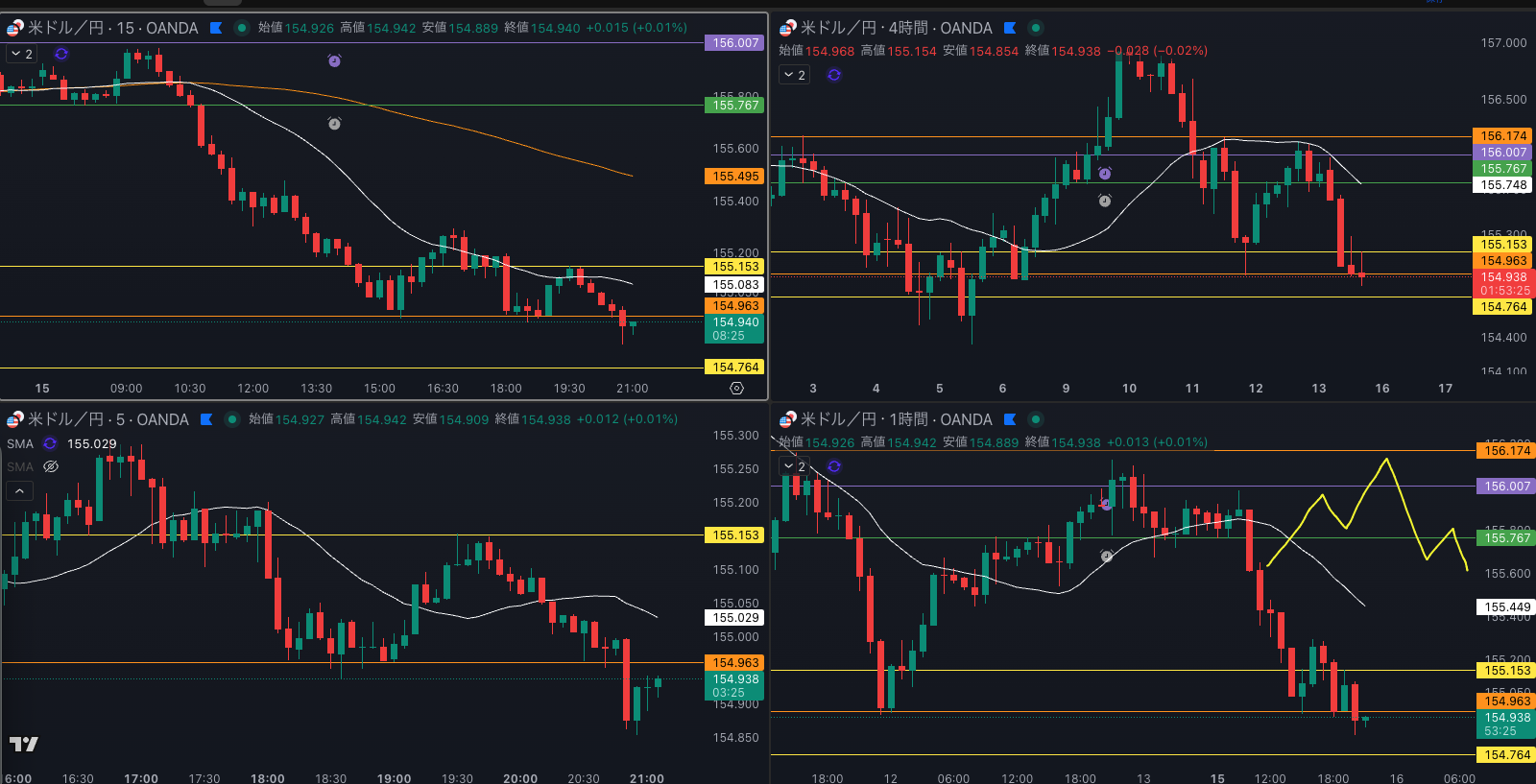 4時間smaは上昇を示唆しているのでここからは観察して行く