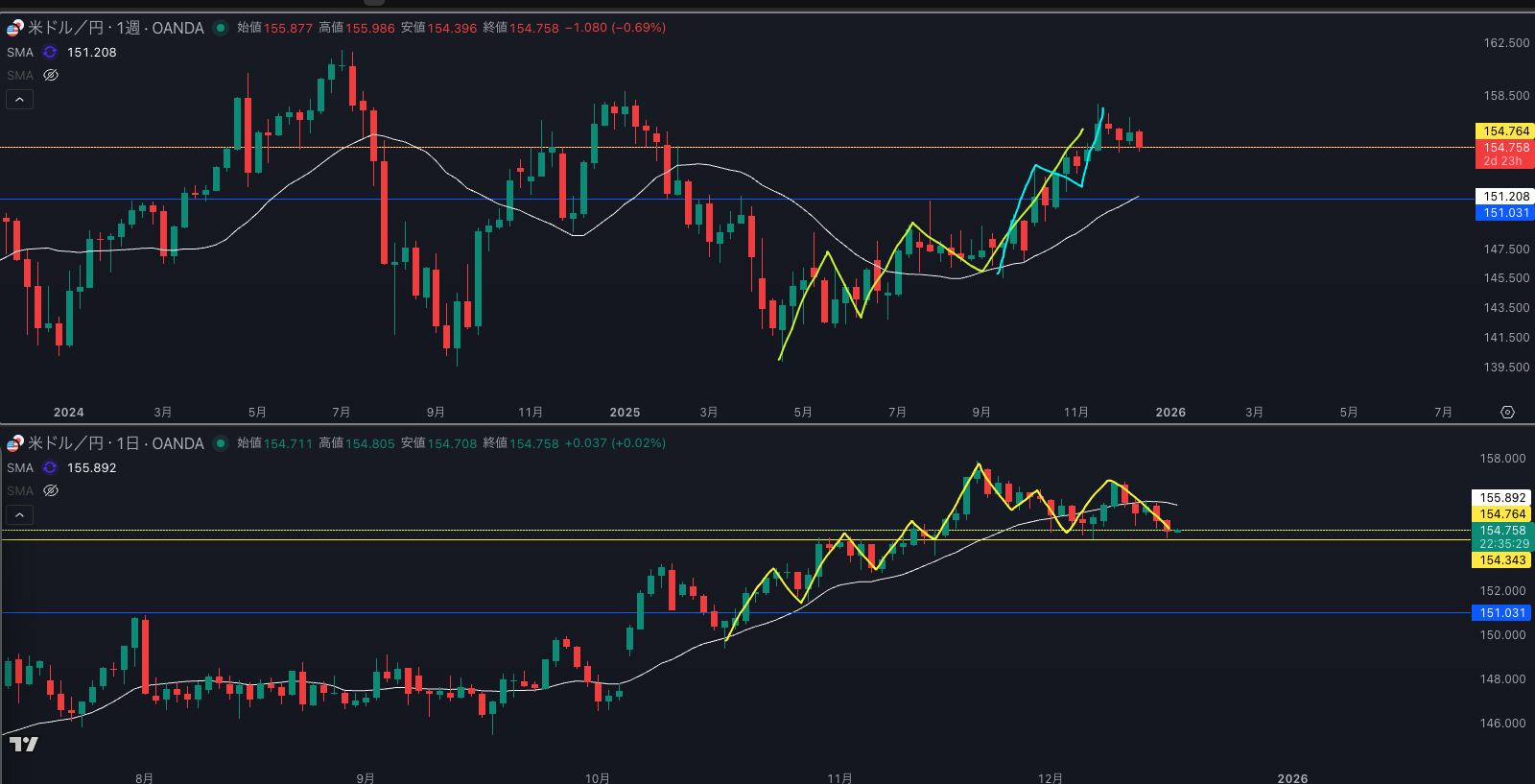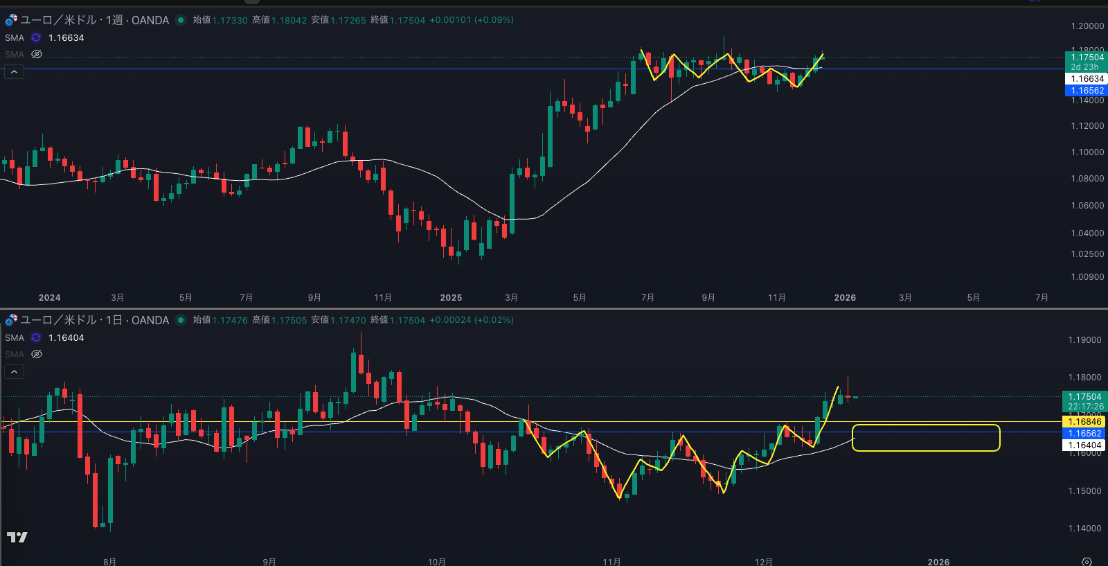- 日足の確定は1日の終わりなので サポレジを動かさない
