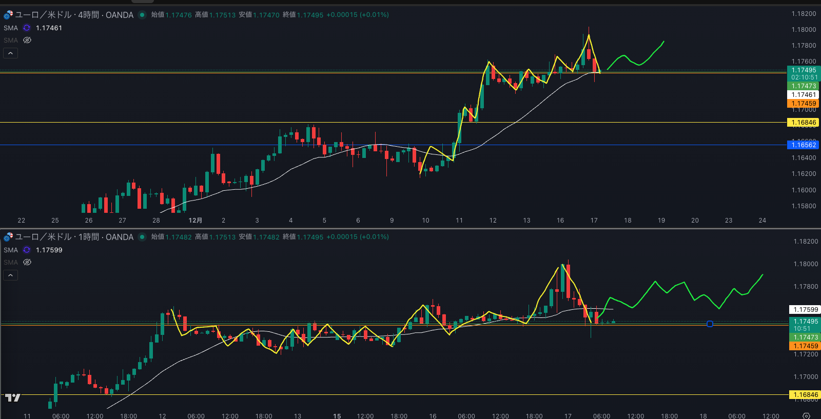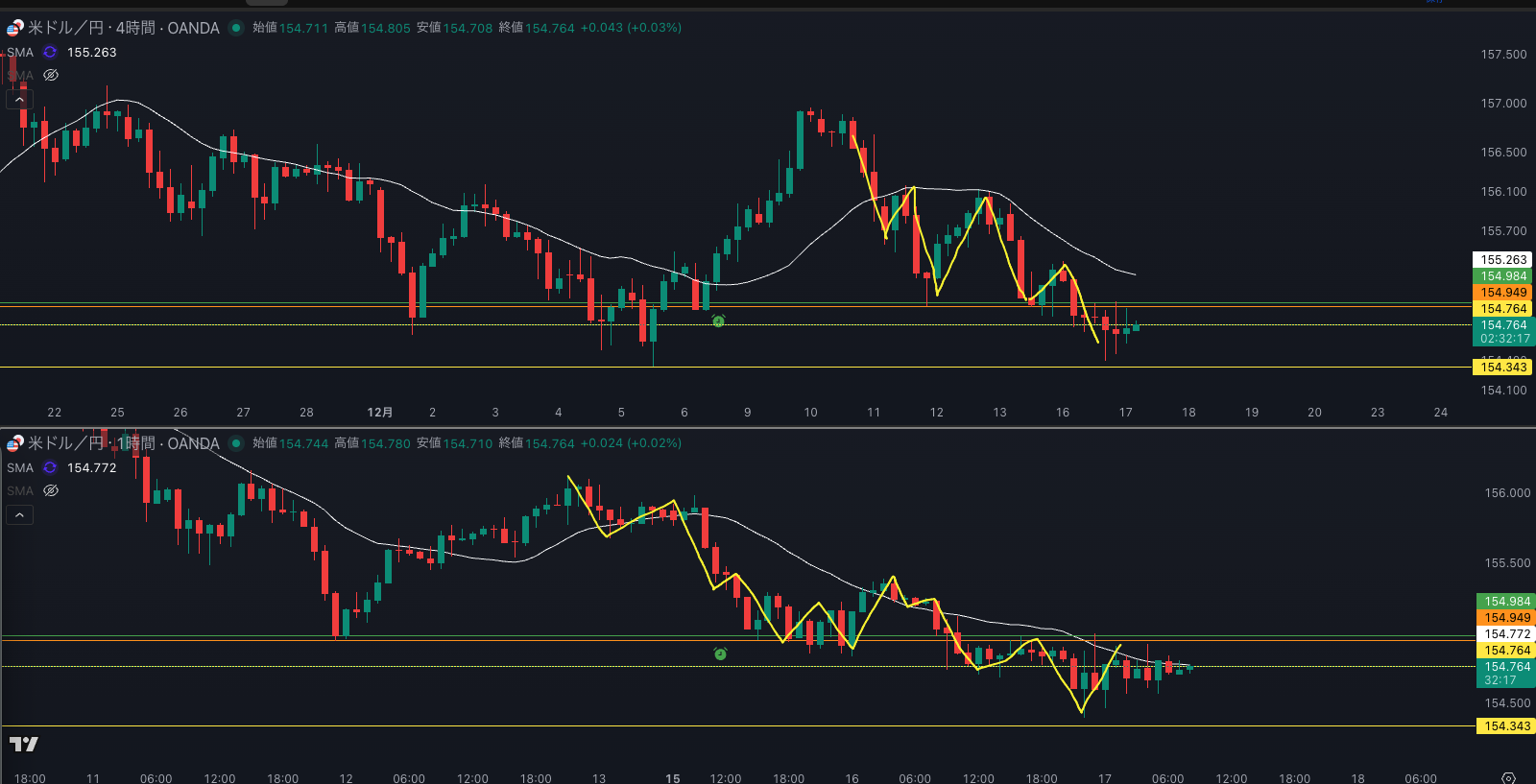 SMA・4時間SMAは下降から減速 売り抑えがいる