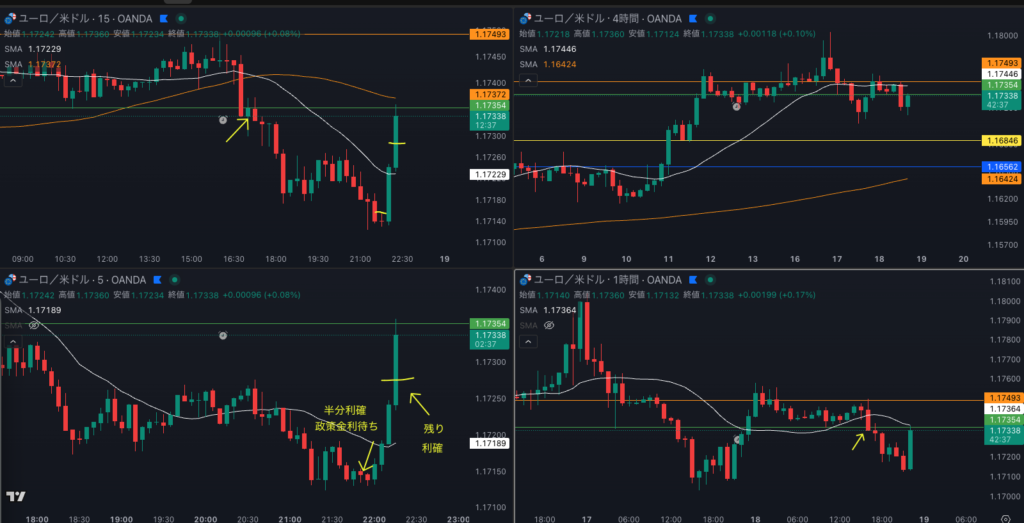 利確した時 正当性、プロスペクト理論では無いのか? - 4時間の波に最後まで関わっていく (H4、H1、M15、M5のチャートを残しておく事により各時間足のチェックをする)