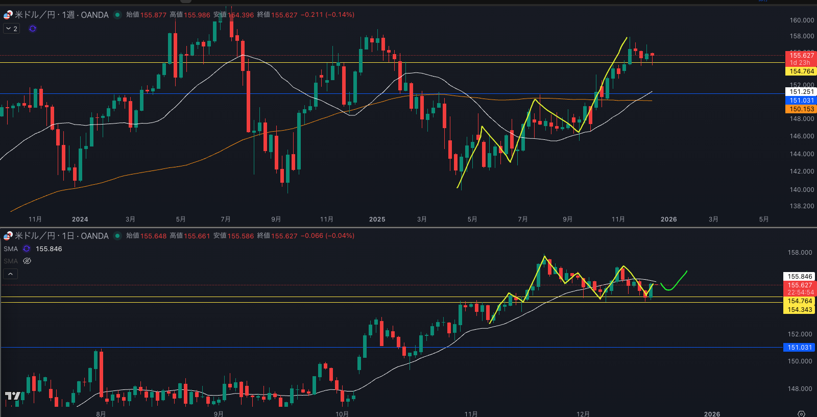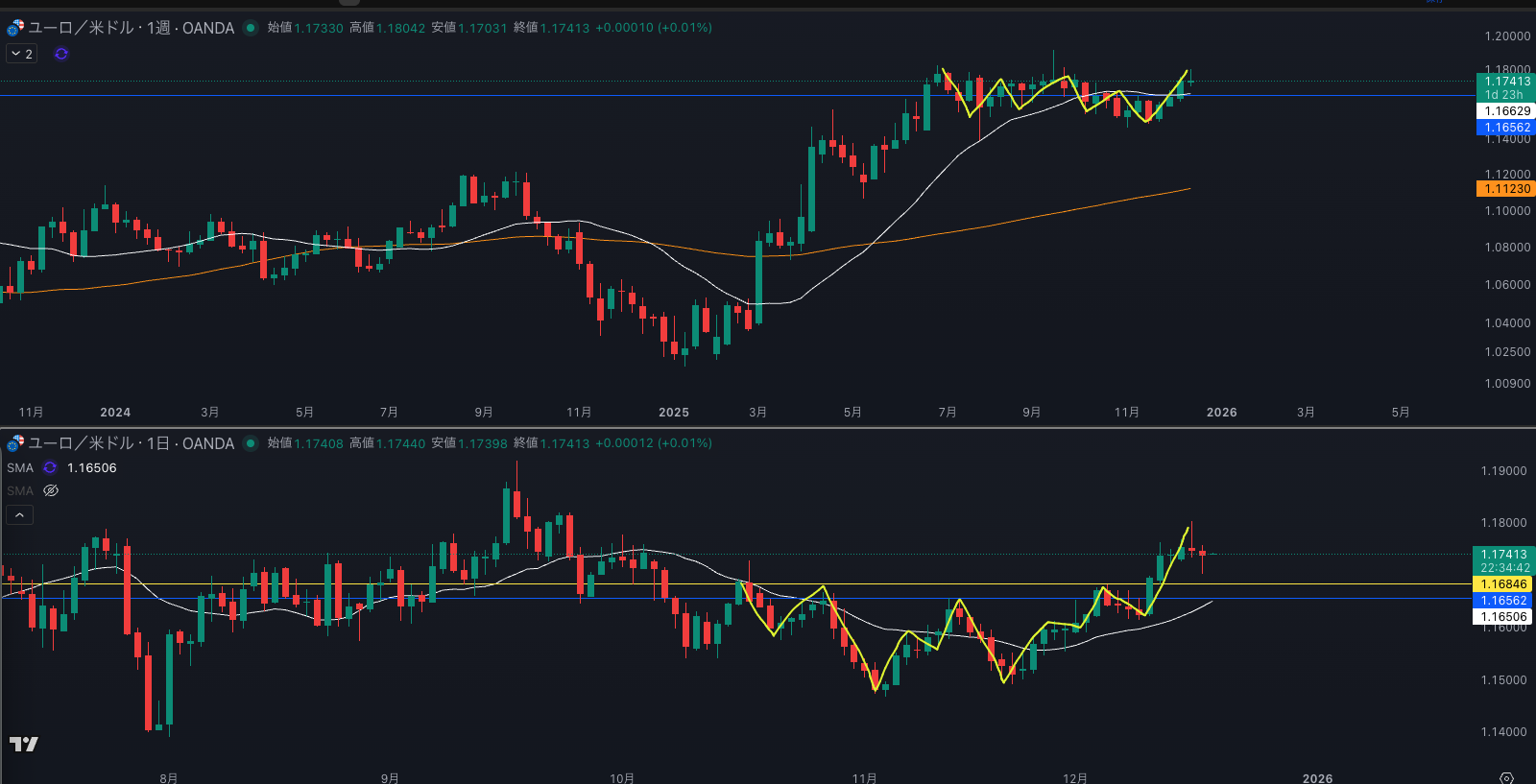 SMA・週足SMAは上昇 買い支えがいる