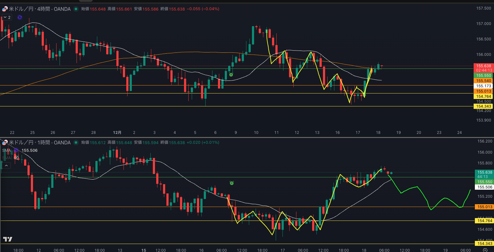 SMA・4時間SMA はまだ下降ぎみ 買い支えがいる