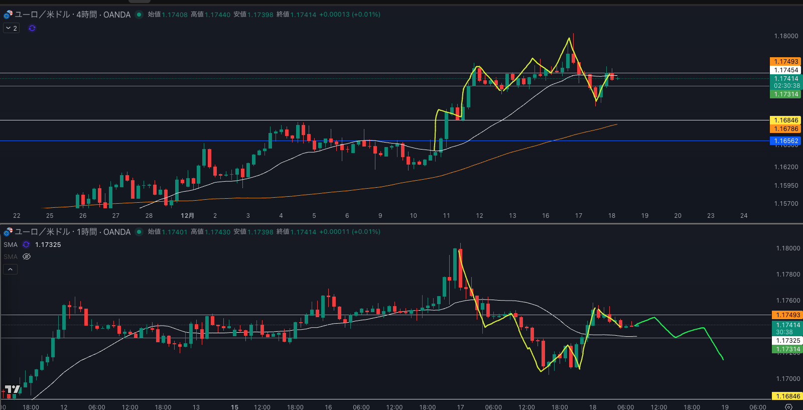 SMA・1時間SMA 上昇 買い支えがいる
