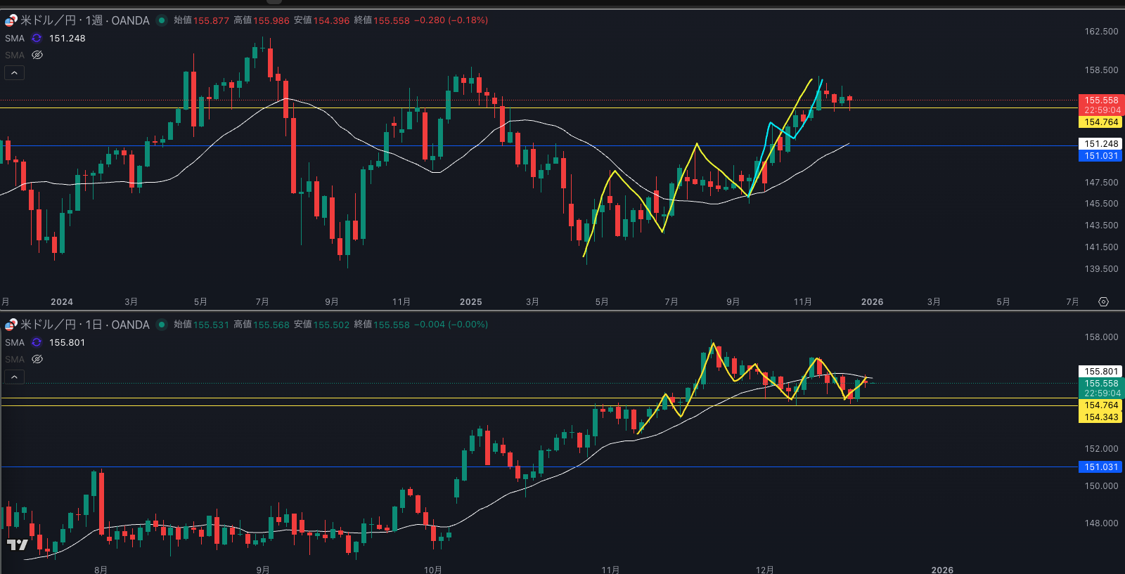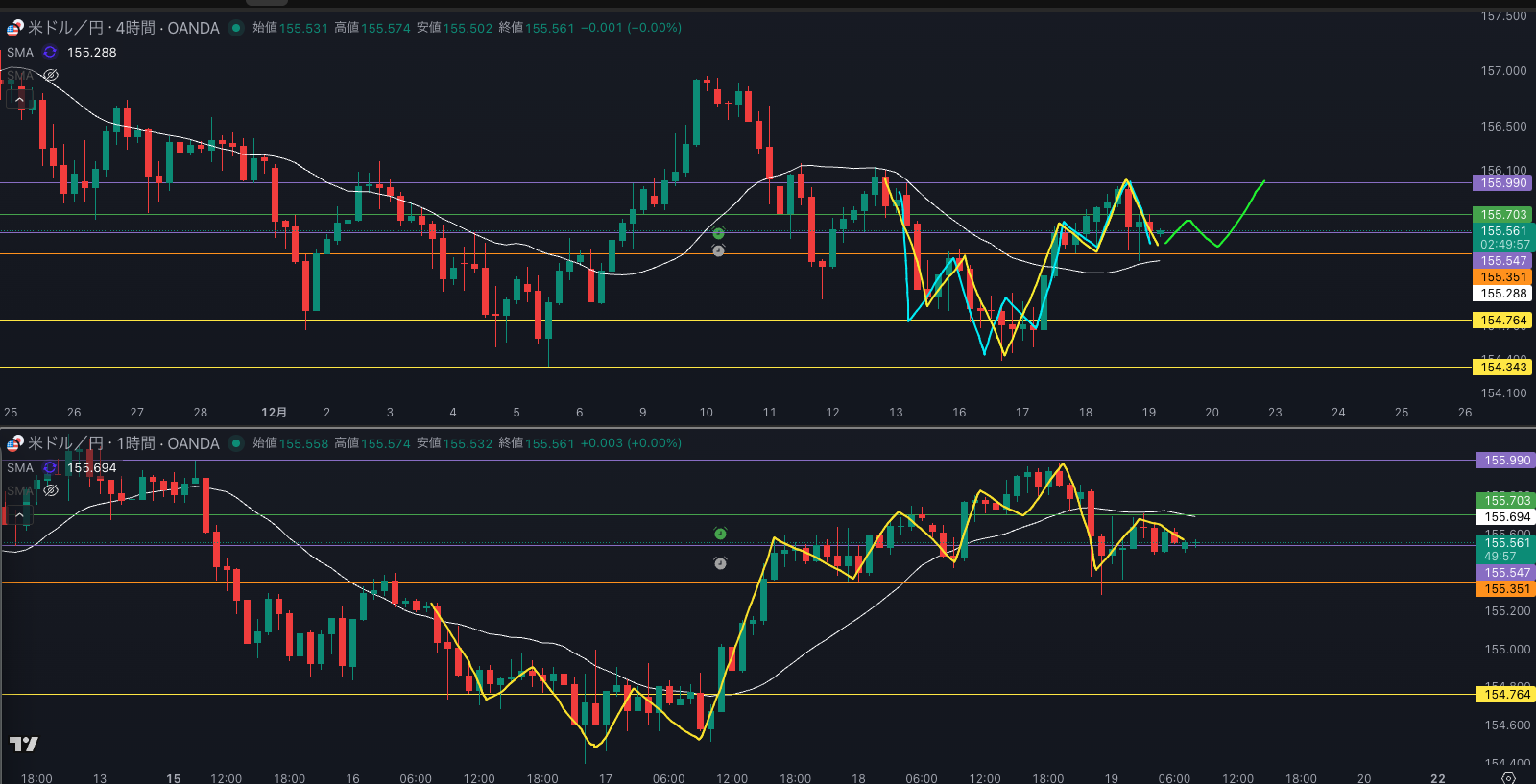 - 日足の確定は1日の終わりなので サポレジを動かさない