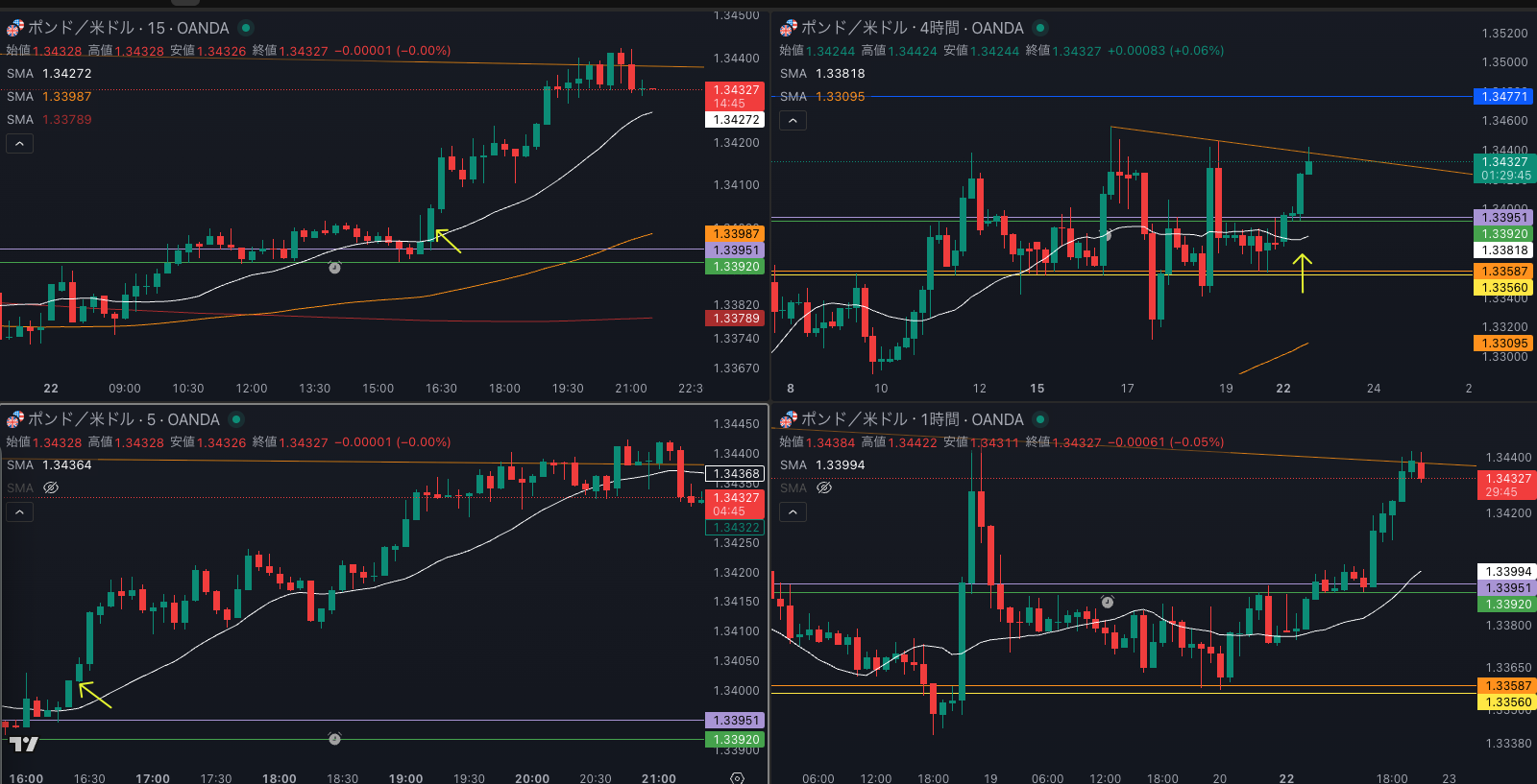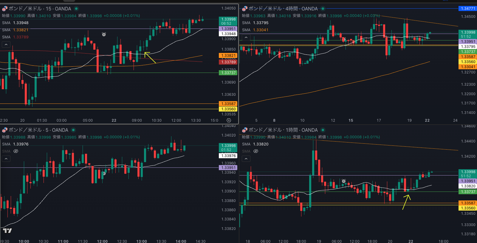利確した時 正当性、プロスペクト理論では無いのか? - 4時間の波に最後まで関わっていく (H4、H1、M15、M5のチャートを残しておく事により各時間足のチェックをする)