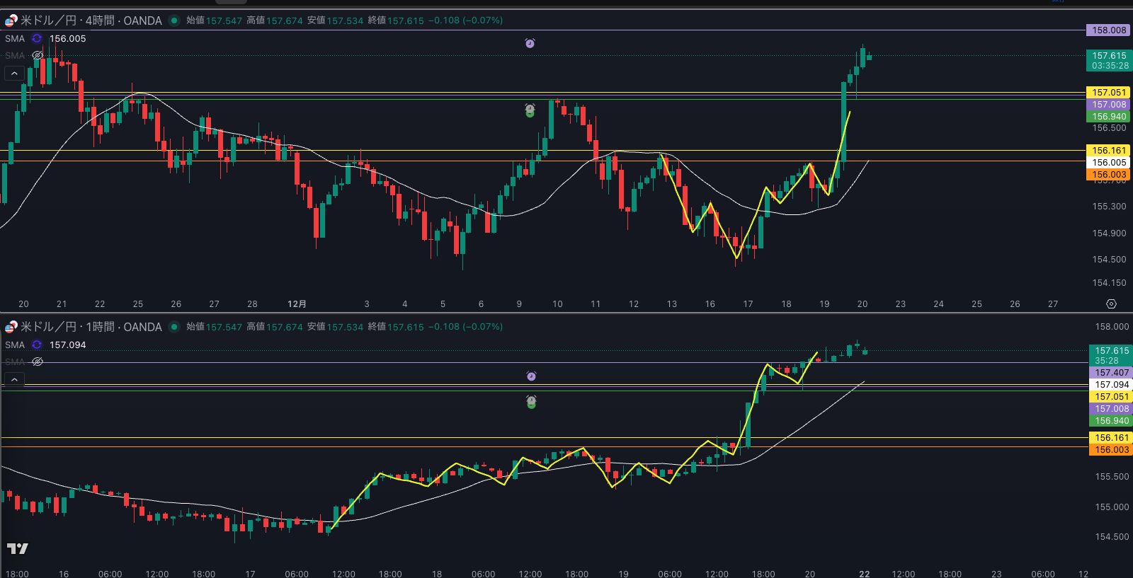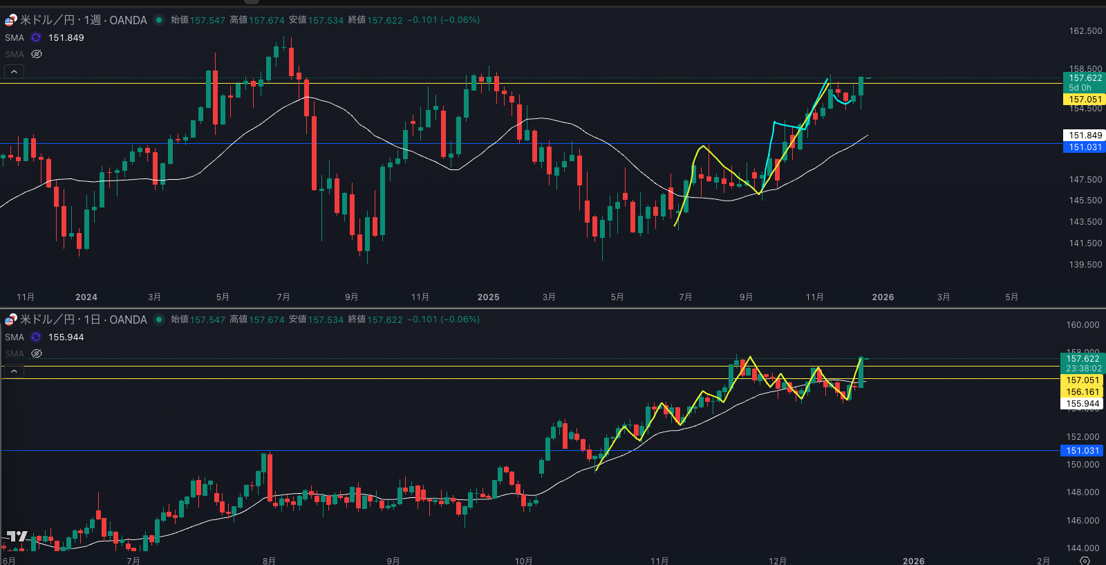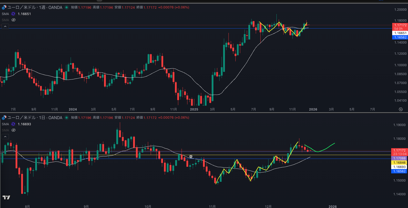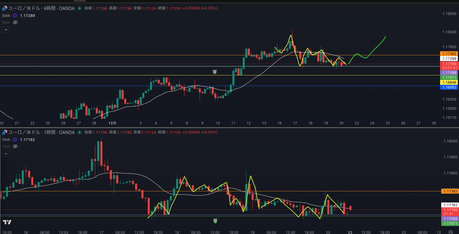 - 日足の確定は1日の終わりなので サポレジを動かさない