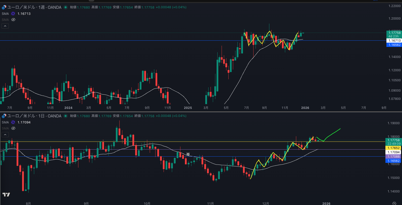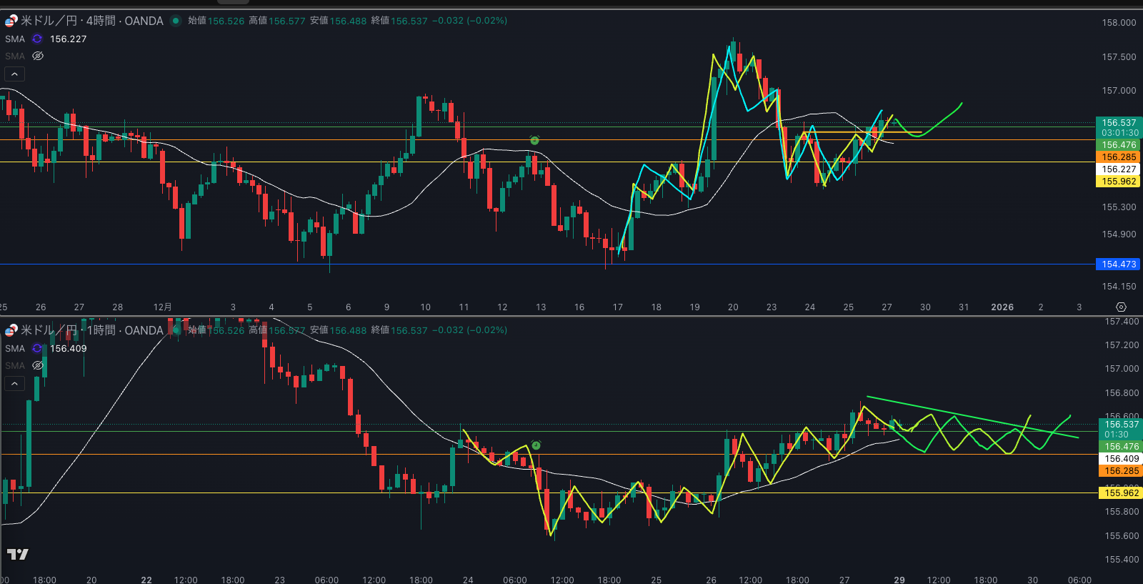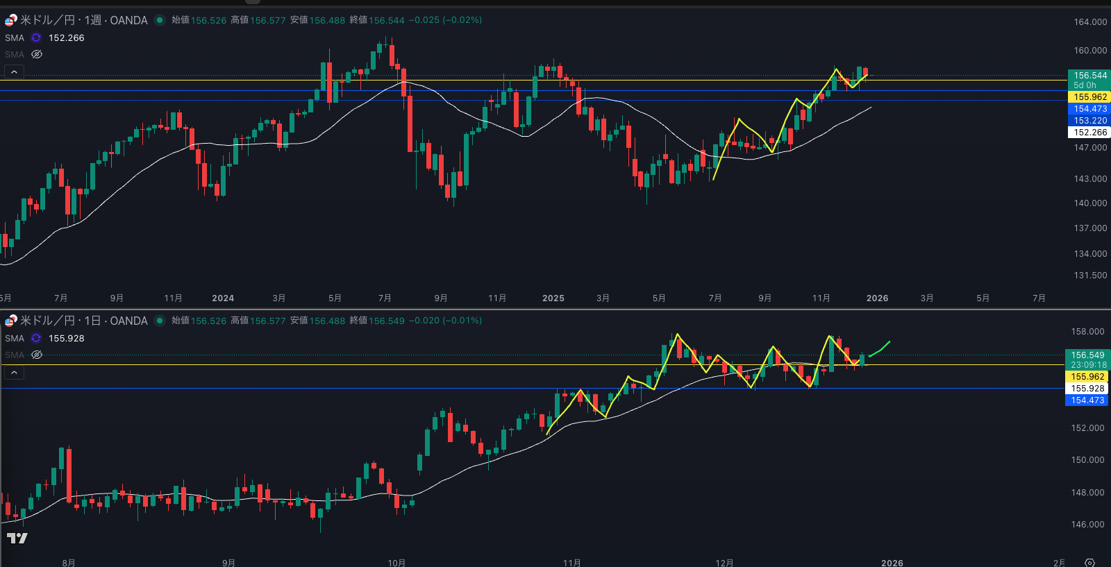 - 日足の確定は1日の終わりなので サポレジを動かさない