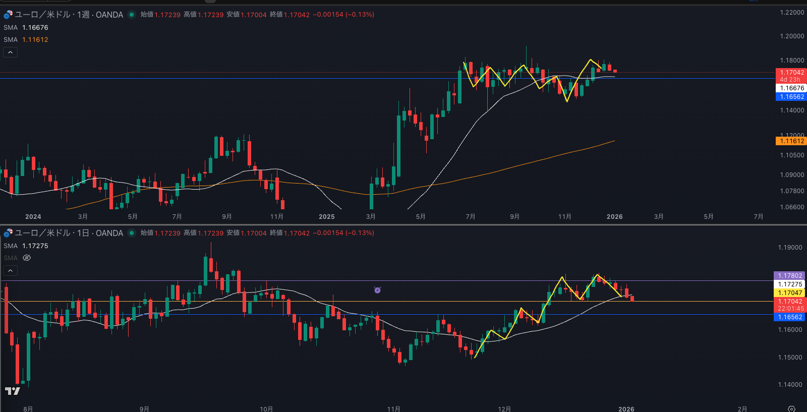 SMA・日足SMAはヨコヨコ から上昇 買い支えがいる