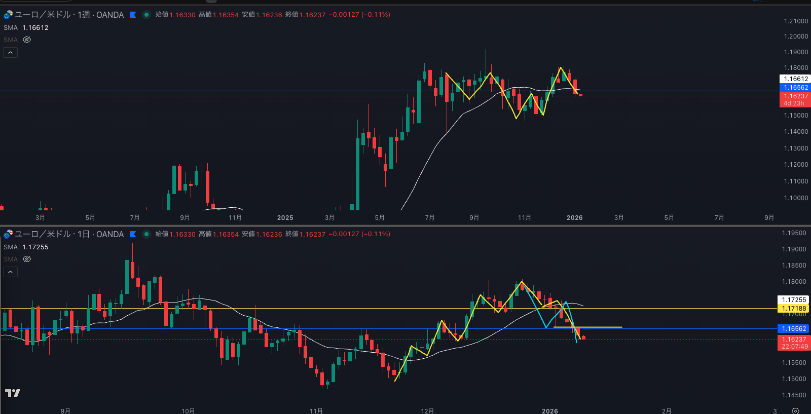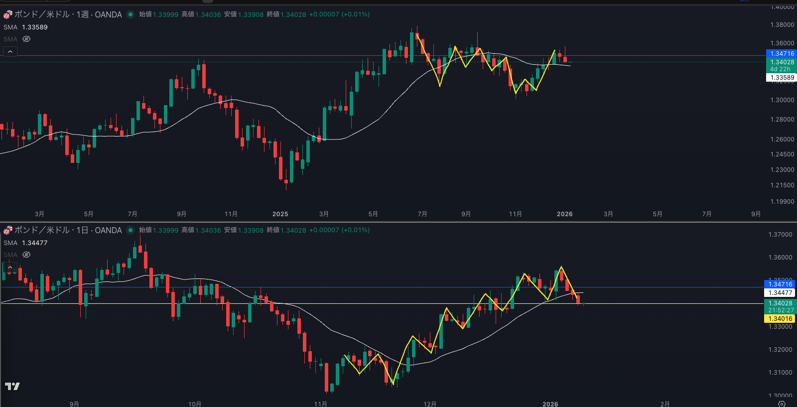 - 日足の確定は1日の終わりなので サポレジを動かさない
