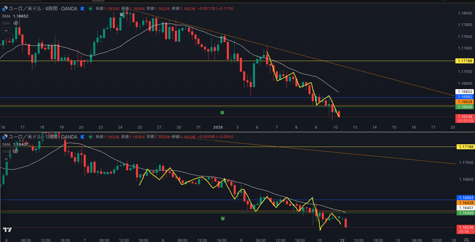SMAの位置から上のラインを考えていくが臨機応変に - 4時間では売っていけ