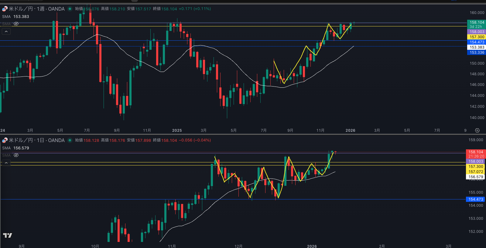 SMA・週足SMAは上昇 買い支えがいる