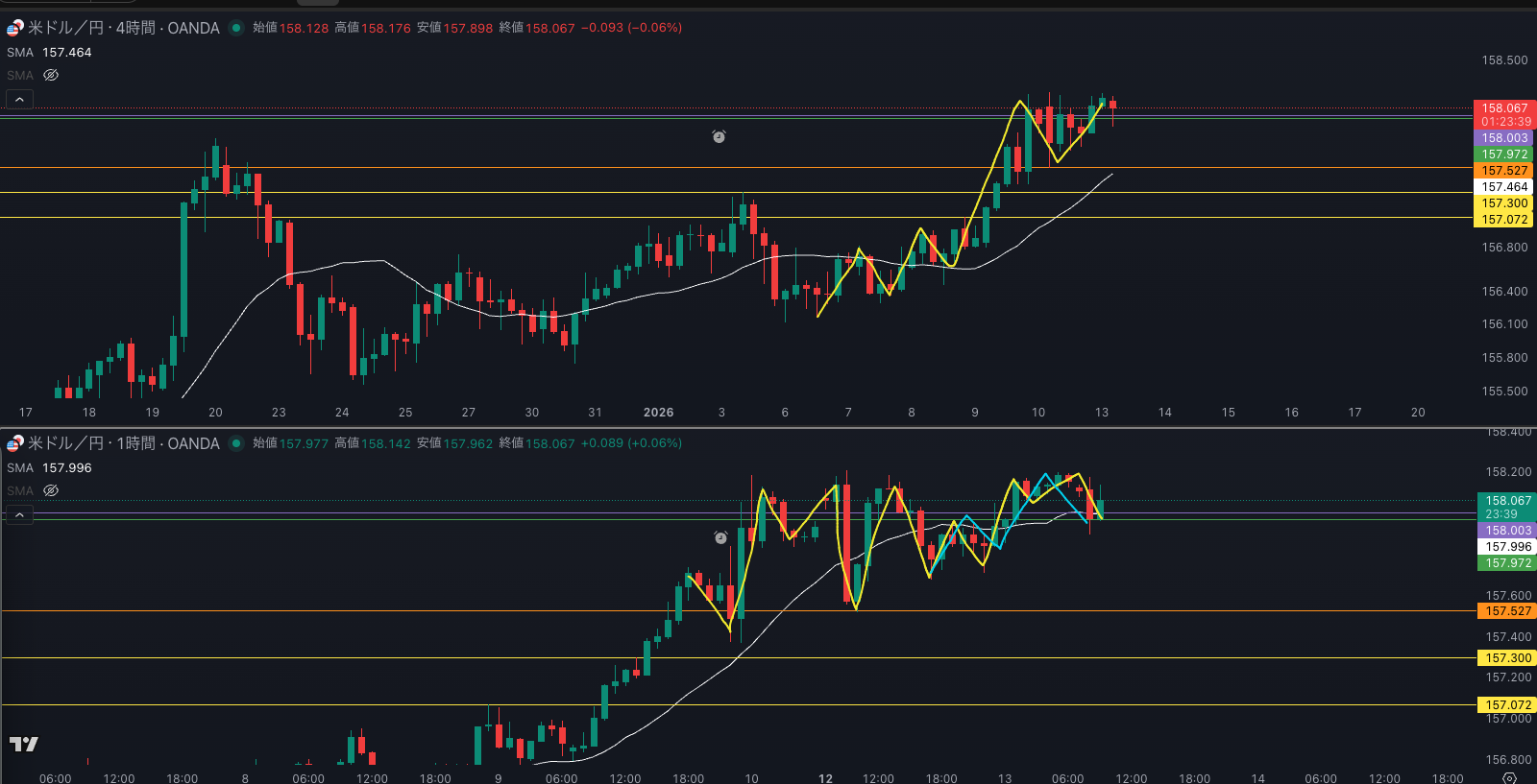 SMA・4時間SMA 上昇 買い支えがいる