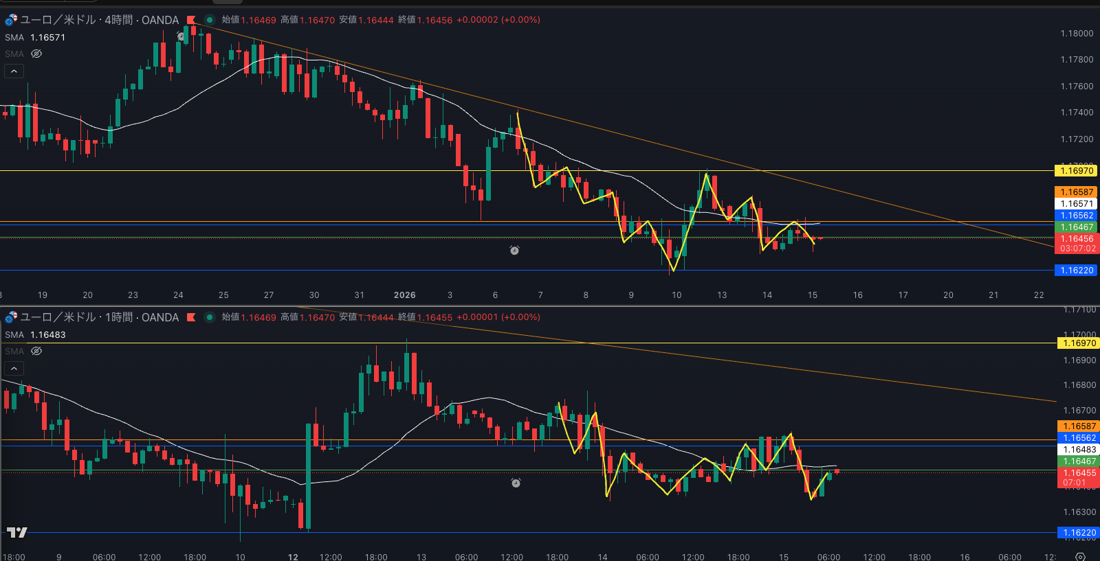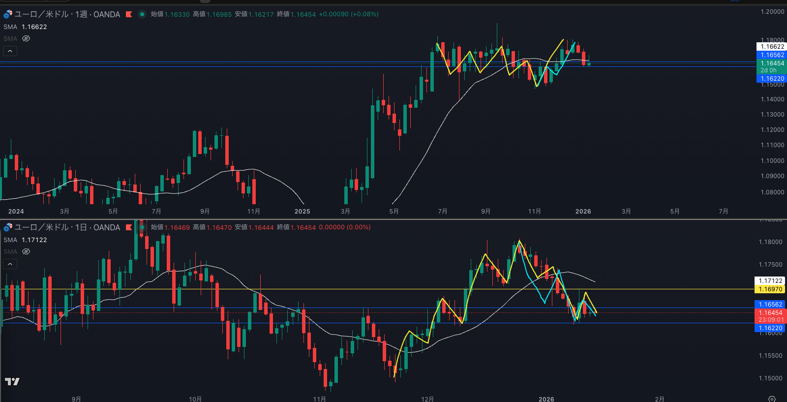 - 日足の確定は1日の終わりなので サポレジを動かさない