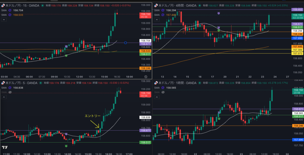 - 15時35分 終値で15分を超えてきた足でエントリー