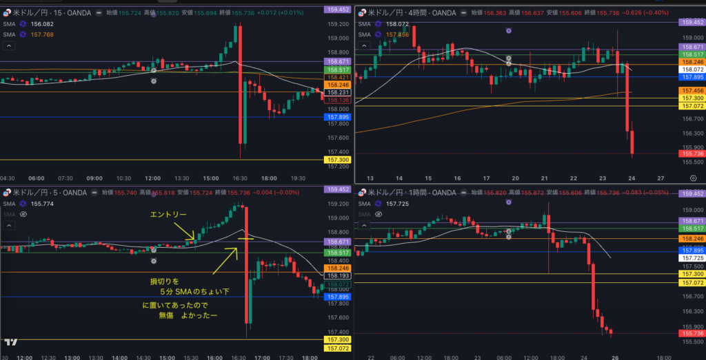 利確した時 正当性、プロスペクト理論では無いのか? - 4時間の波に最後まで関わっていく (H4、H1、M15、M5のチャートを残しておく事により各時間足のチェックをする)