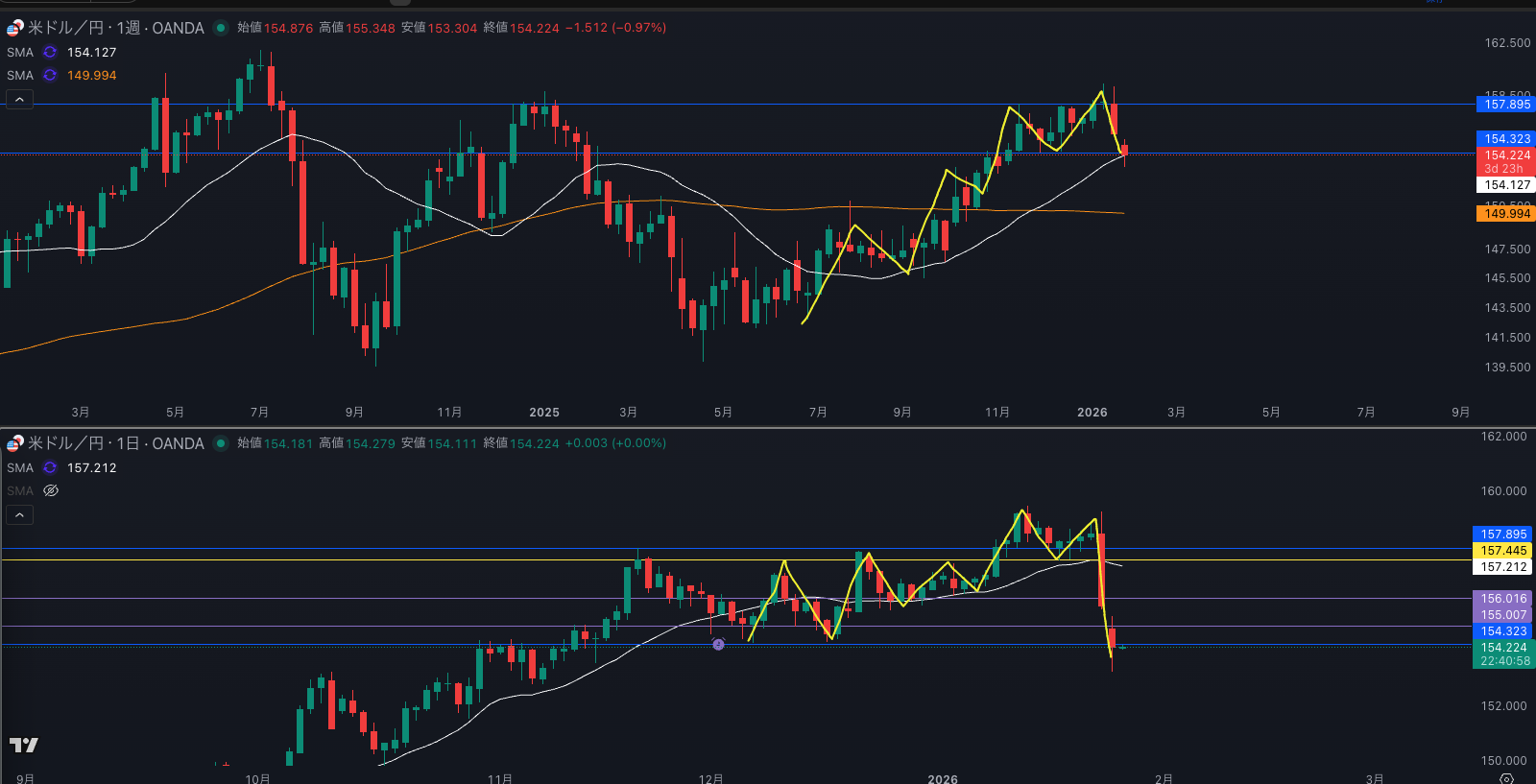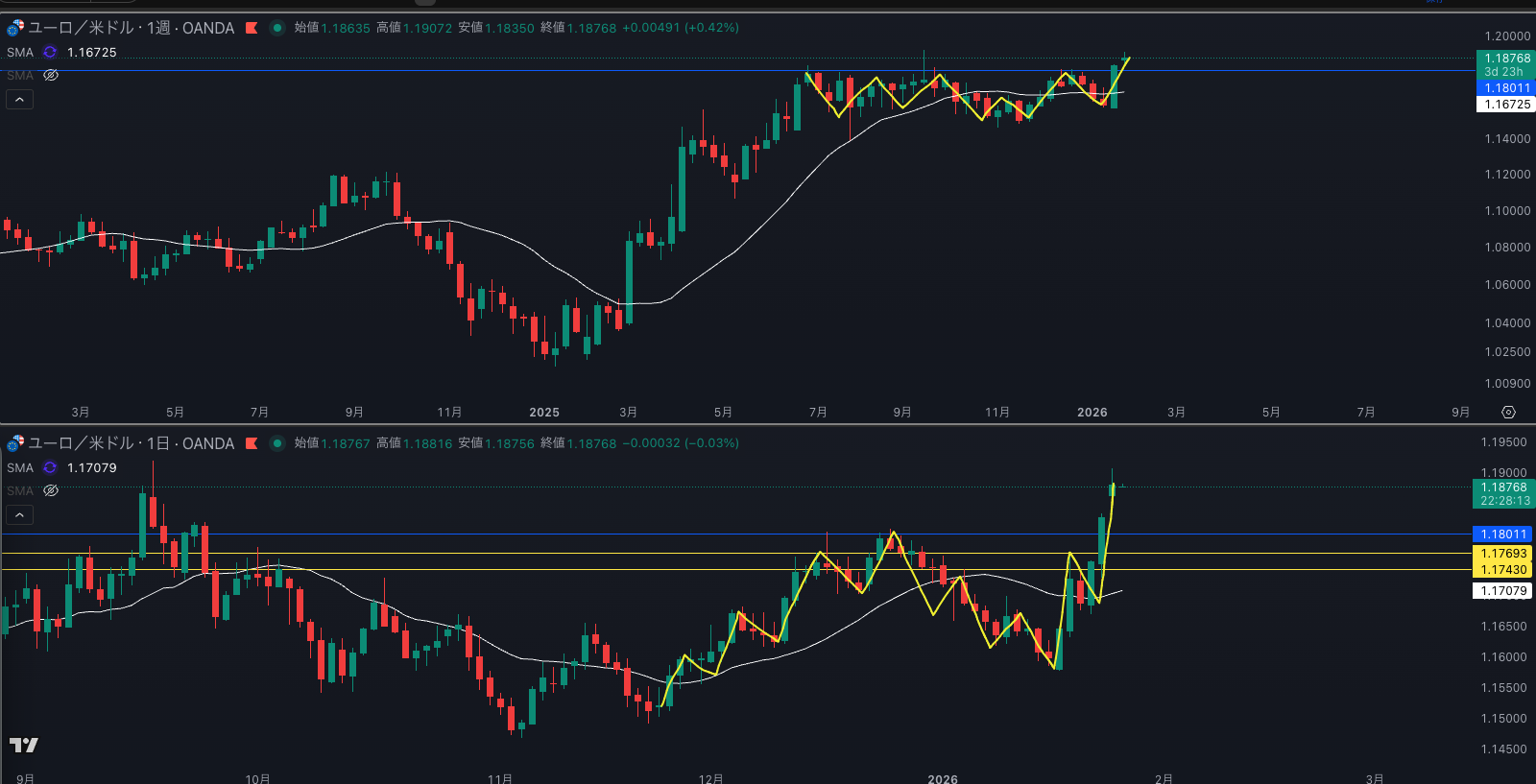 SMA・週足SMAは上昇 買い支えがいる