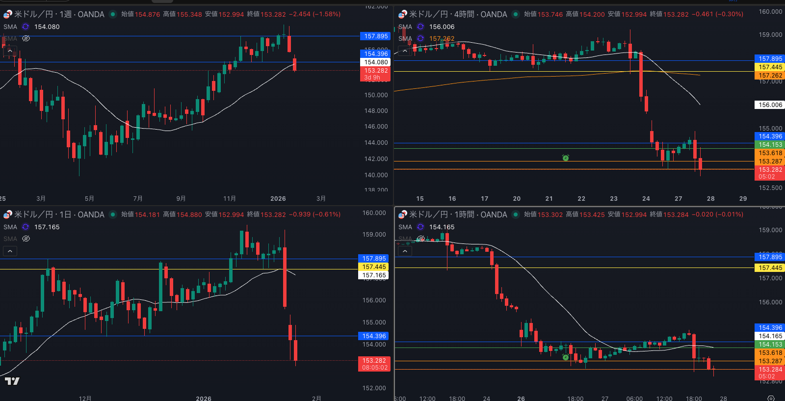 SMA・4時間SMA 下降 売り抑えがいる
