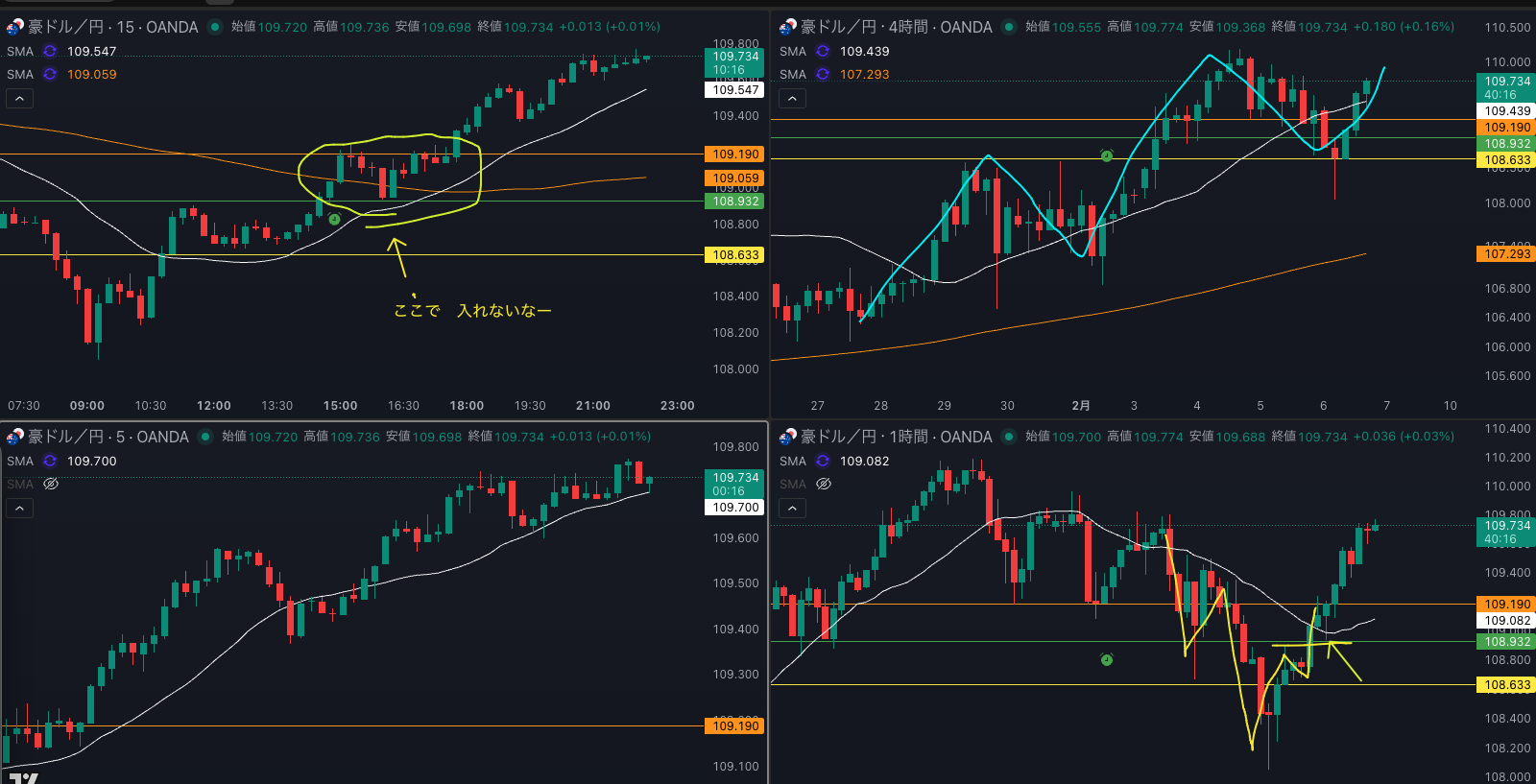 1時間が上を向いたら4時間の SMAも上抜け 押し目買いを狙えそう