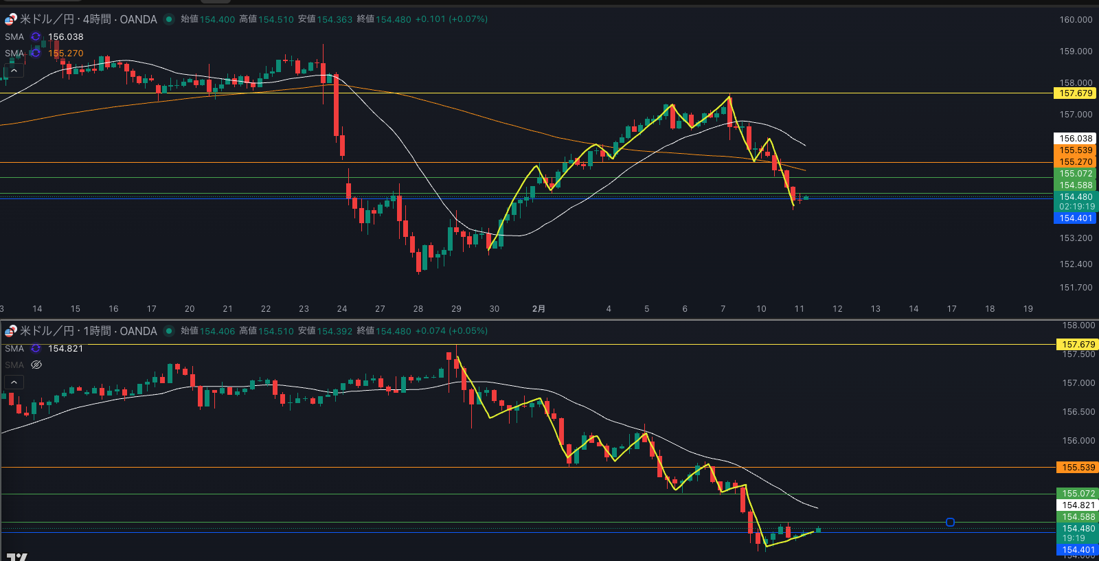 - 日足の波・4時間の波・その中の1時間をイメージしていく