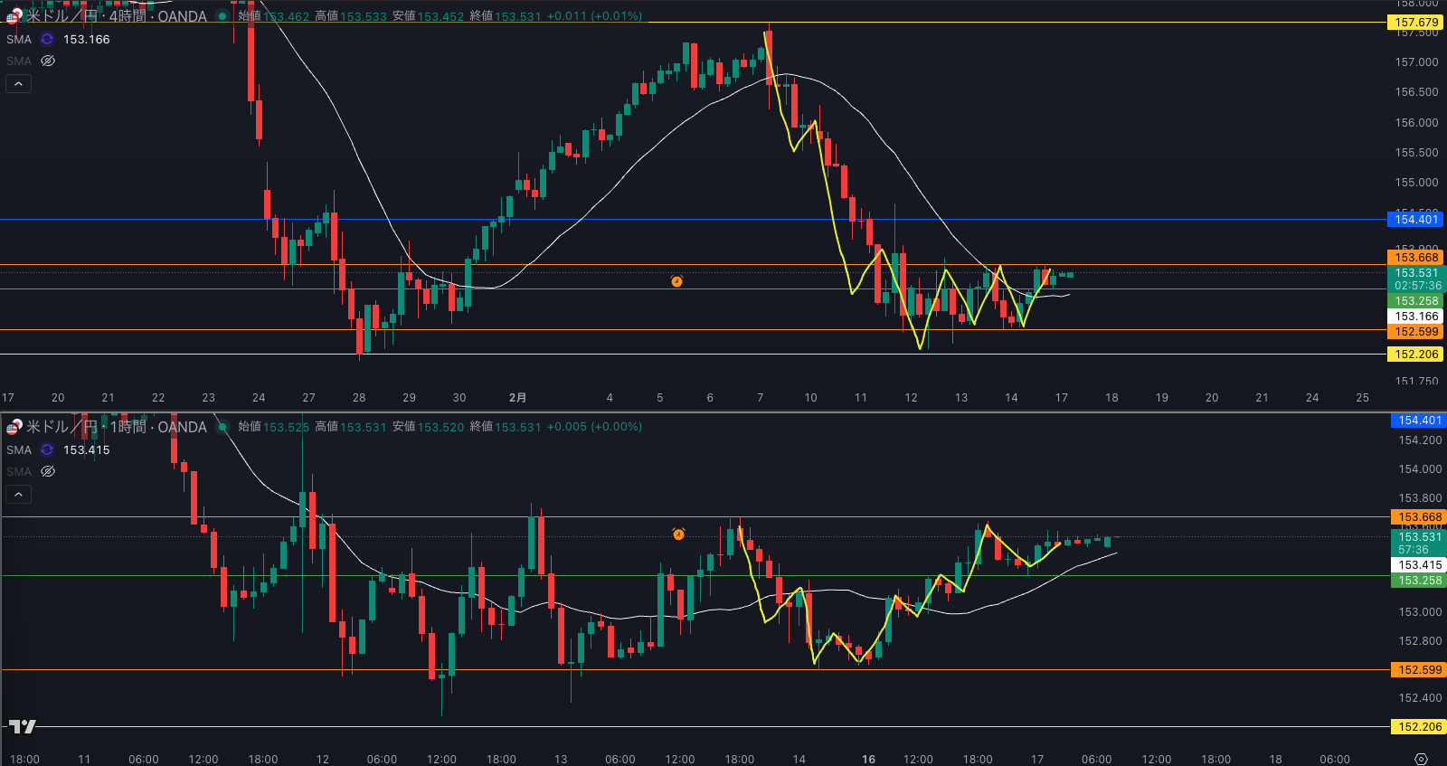 SMA・4時間SMA 下降 売り抑えがいる