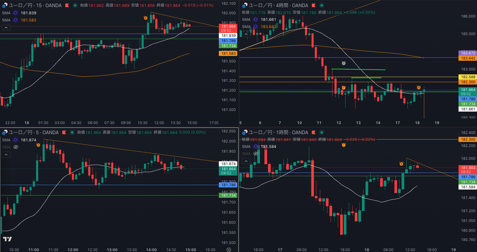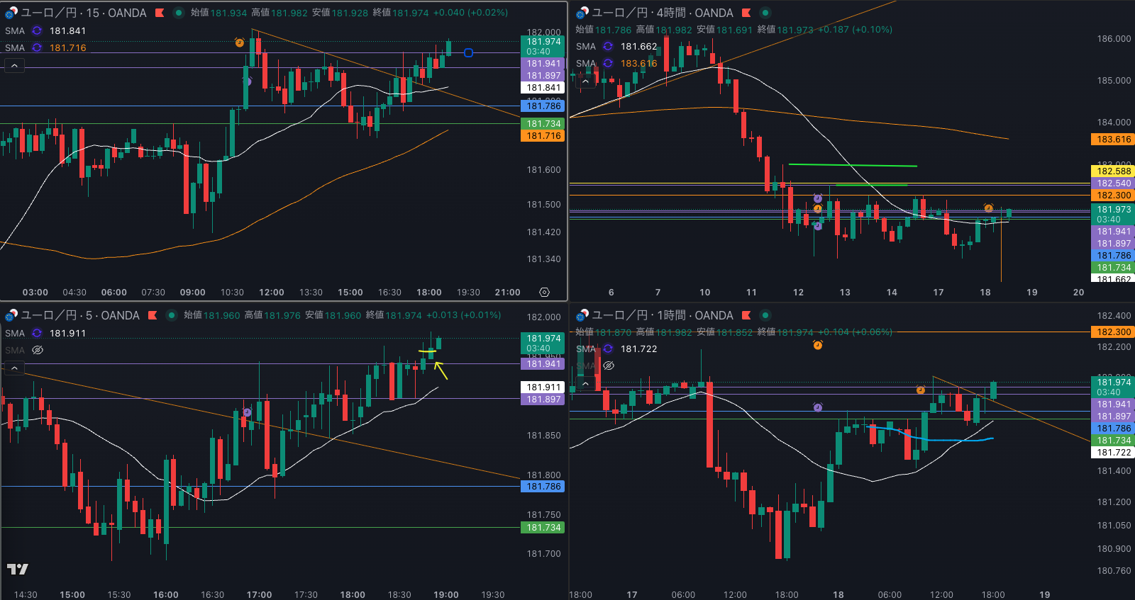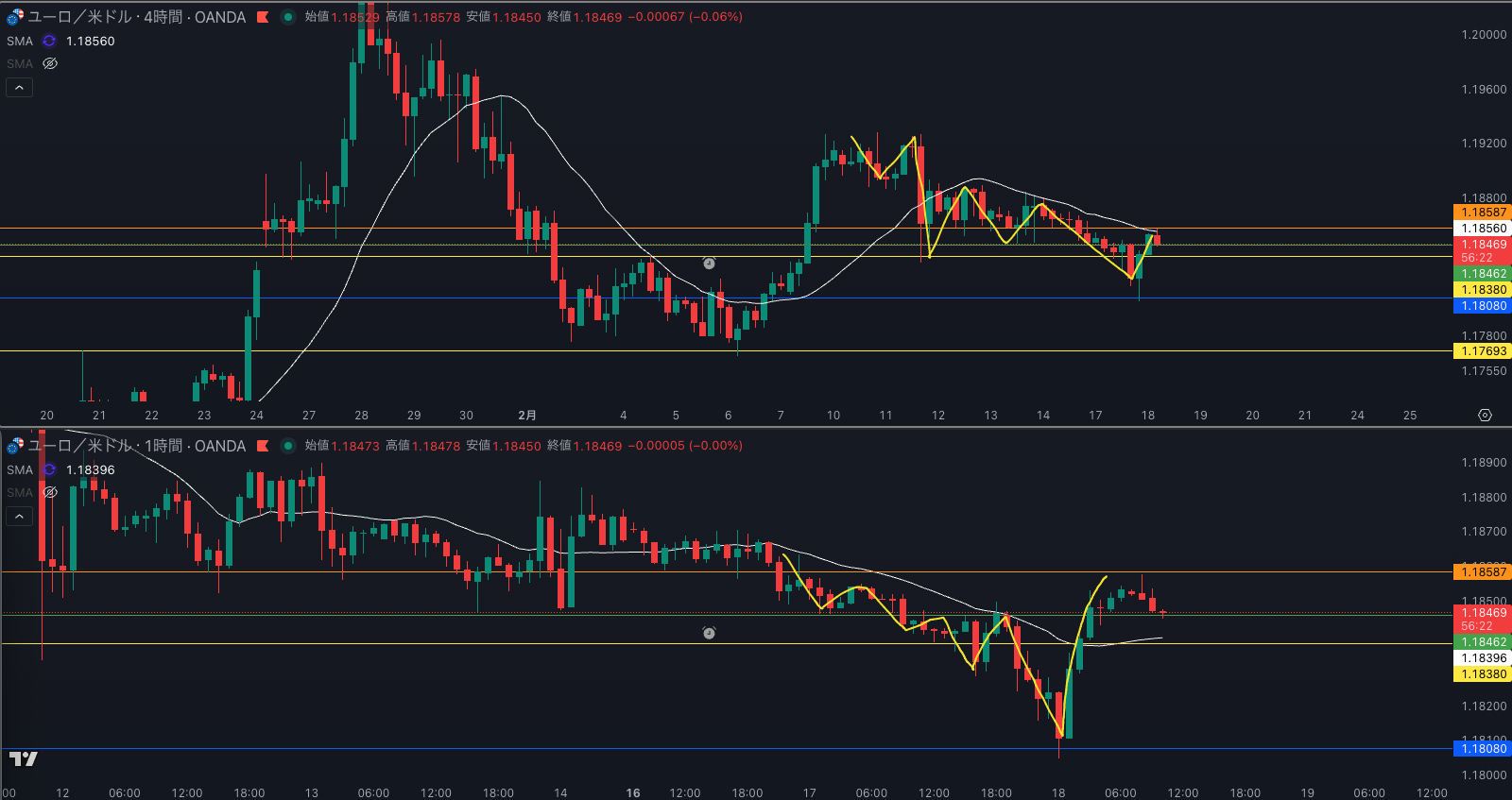 SMA・4時間SMAは 下降 売り抑え