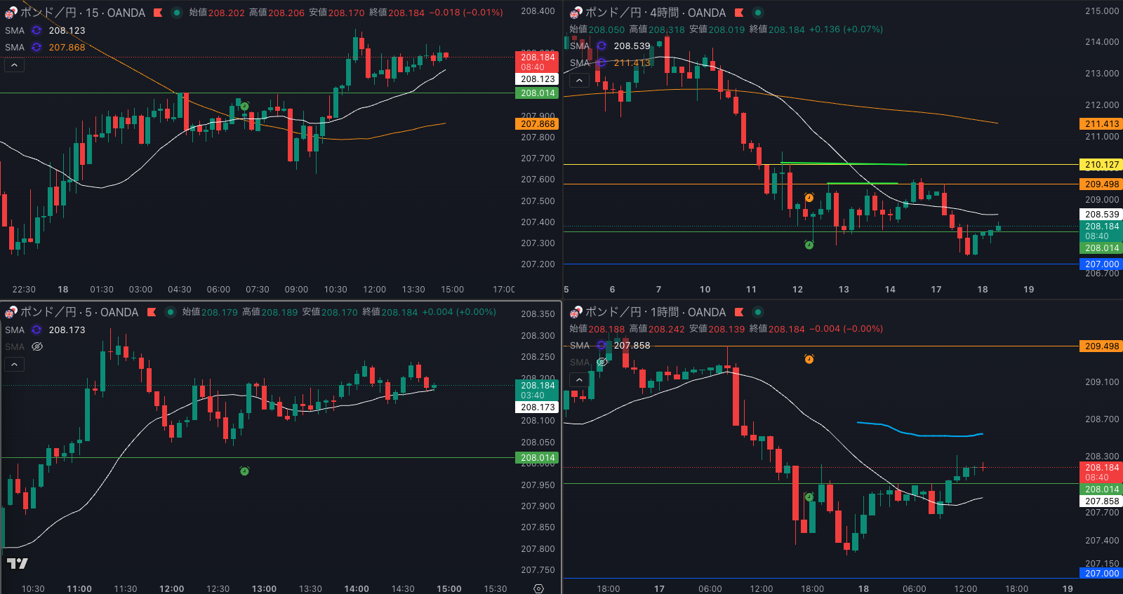ポンド円は 4時間 SMAの下にいるので