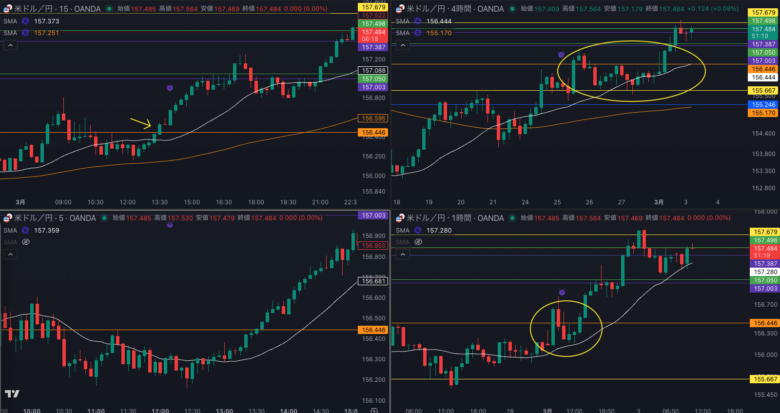 昨日の環境認識では 1時間の押し目で考えていたからなー