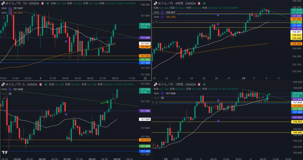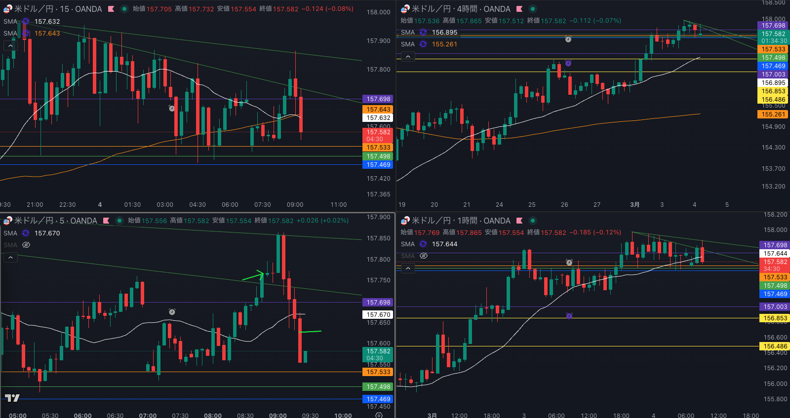 4時間レジスタンスまで戻すと戻り過ぎのような・・観察して行く