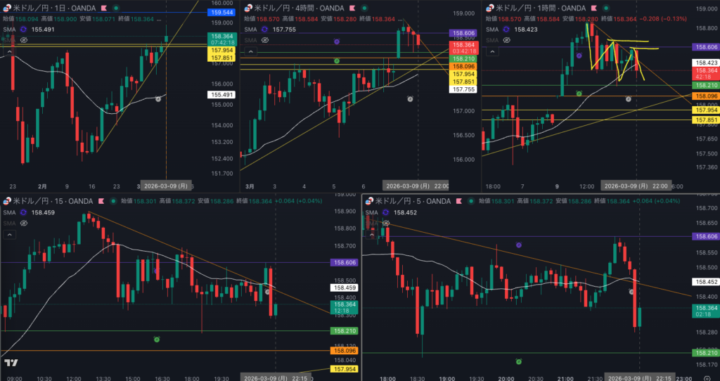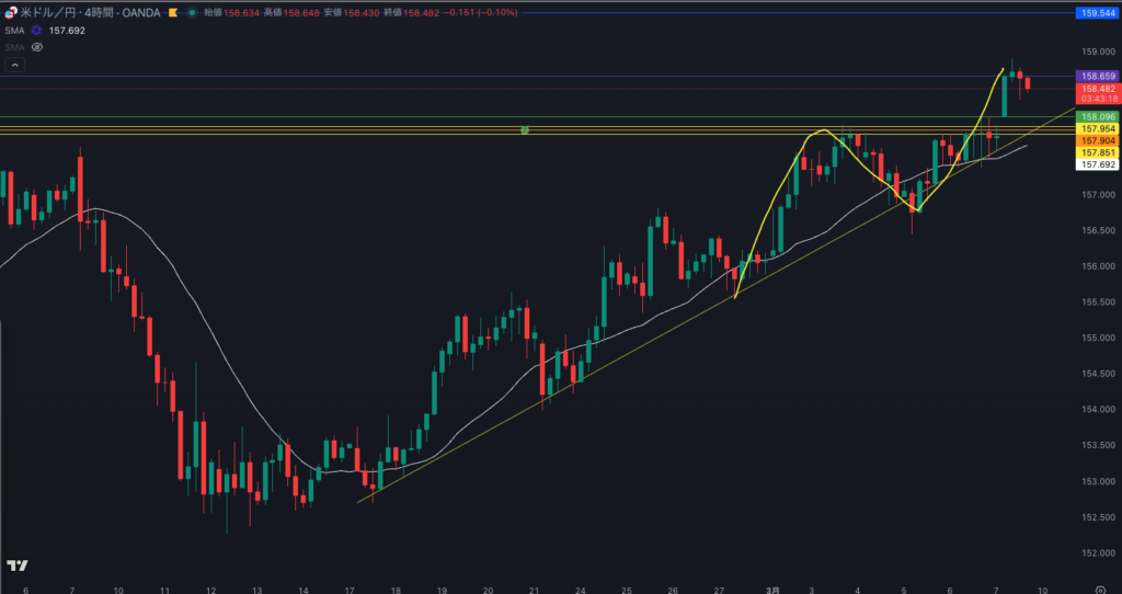 - 4時間実体 下抜け 1時間戻り売りで入ったが