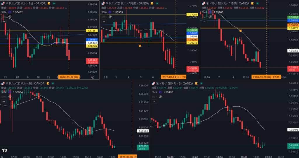 - 日足・4時間 SMAがついてきていないので