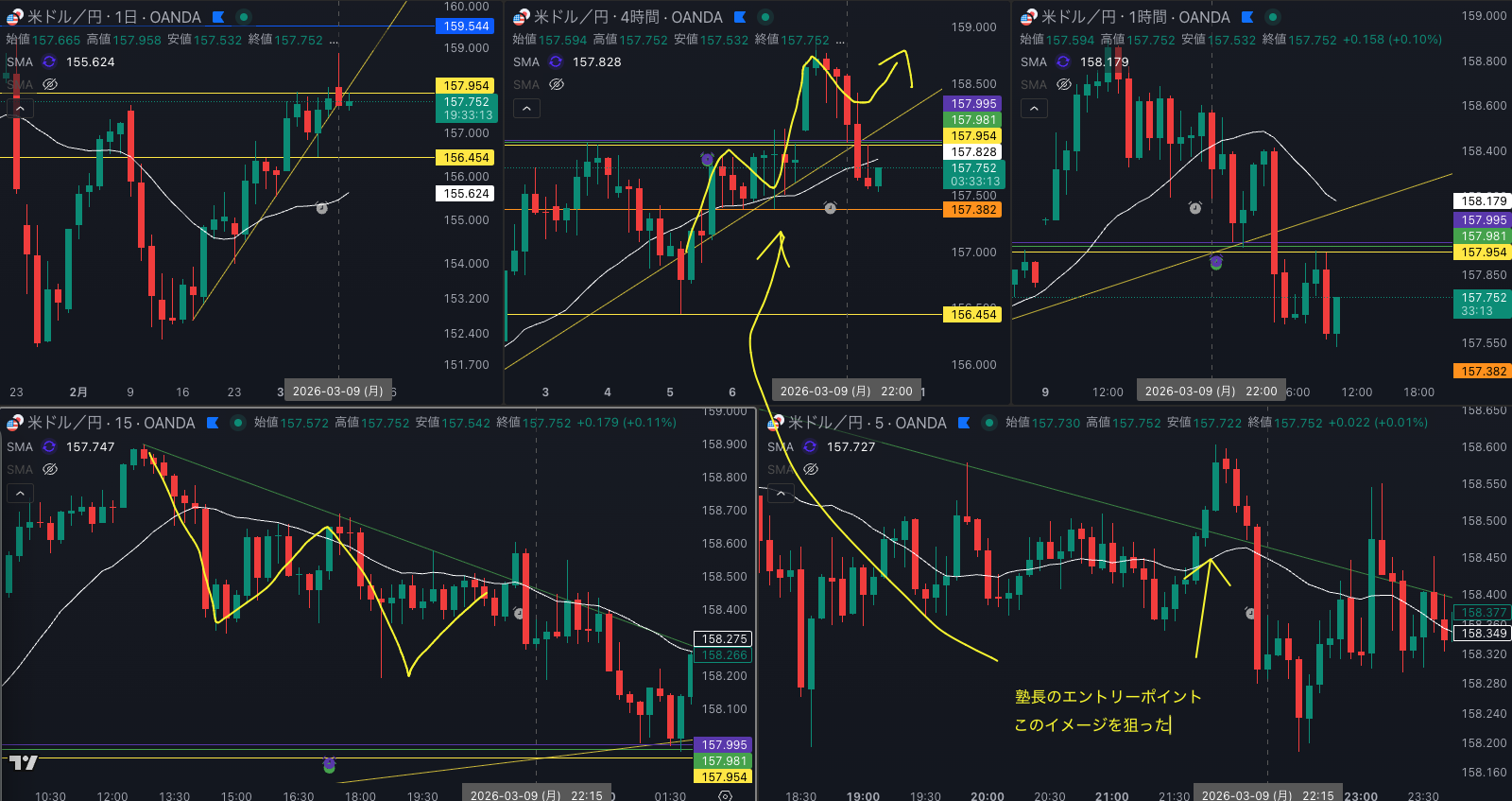 SMA・1時間SMA 上昇 買い支え
