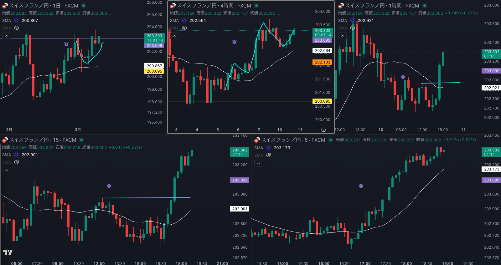SMA・4時間SMA 上昇 から減速