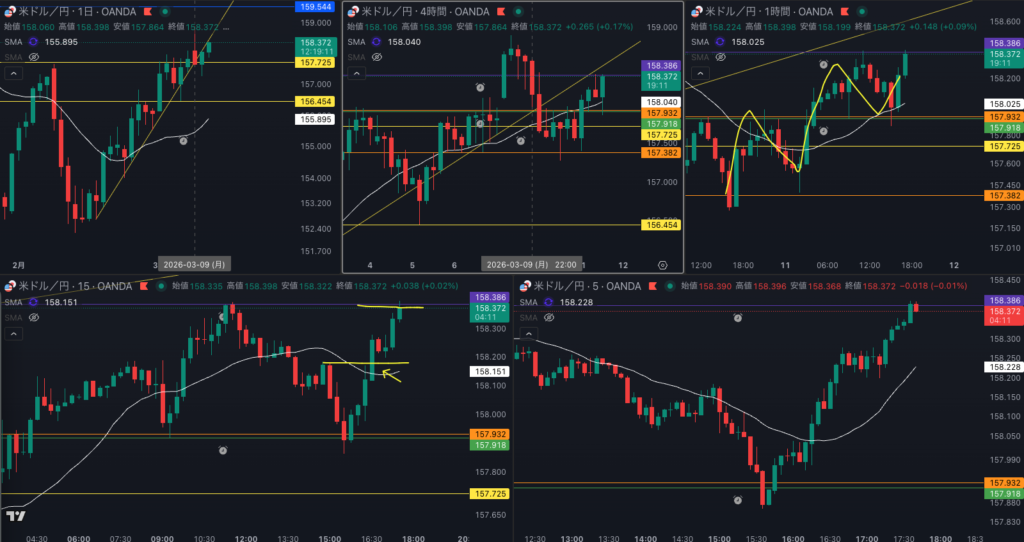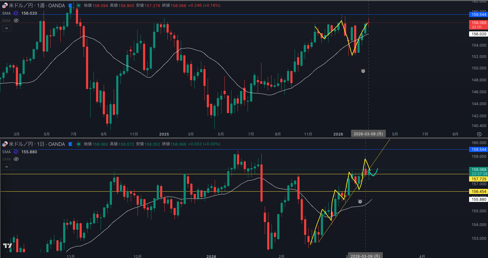 158.5付近でサポレジしてるのも気になる