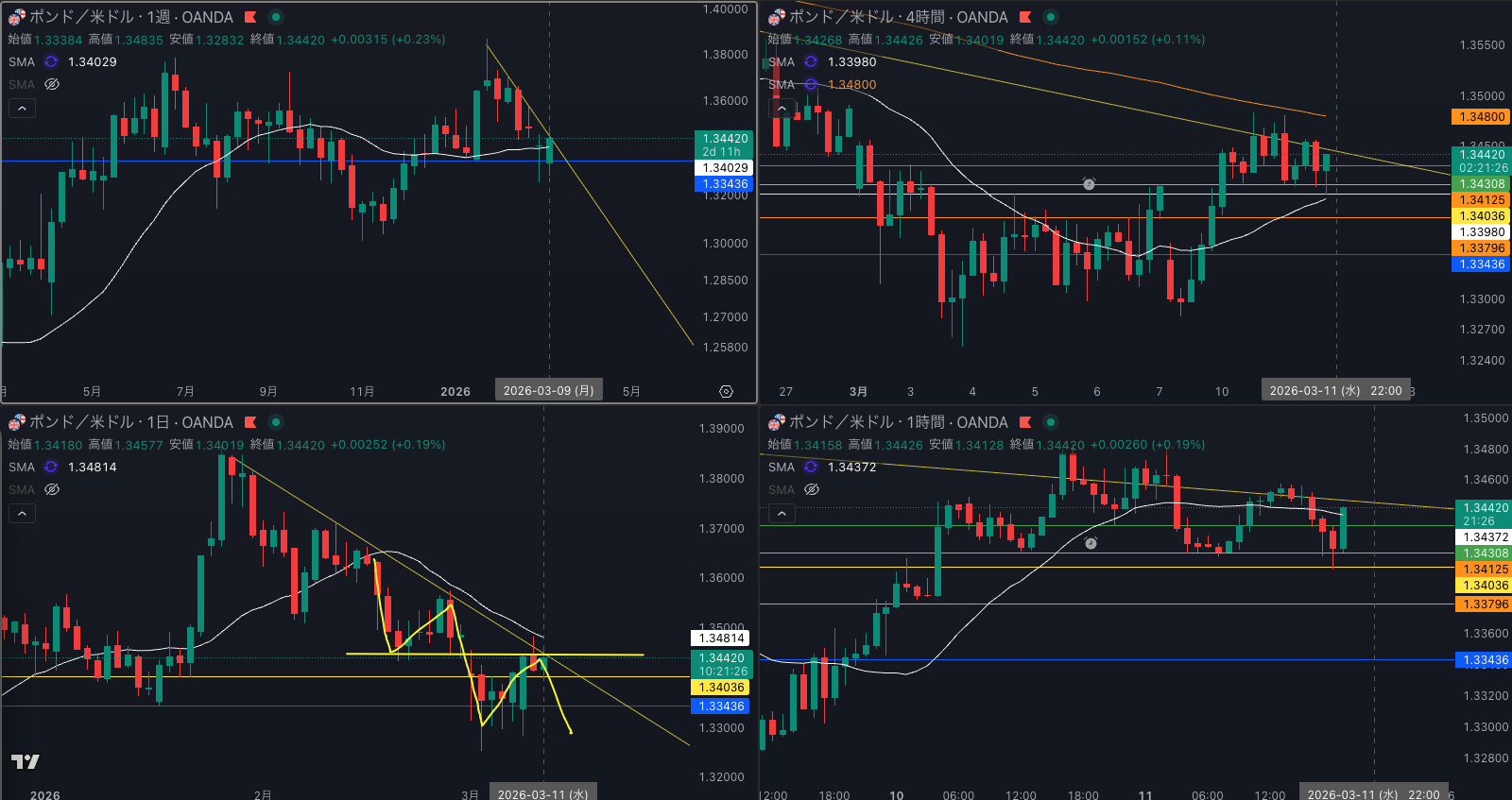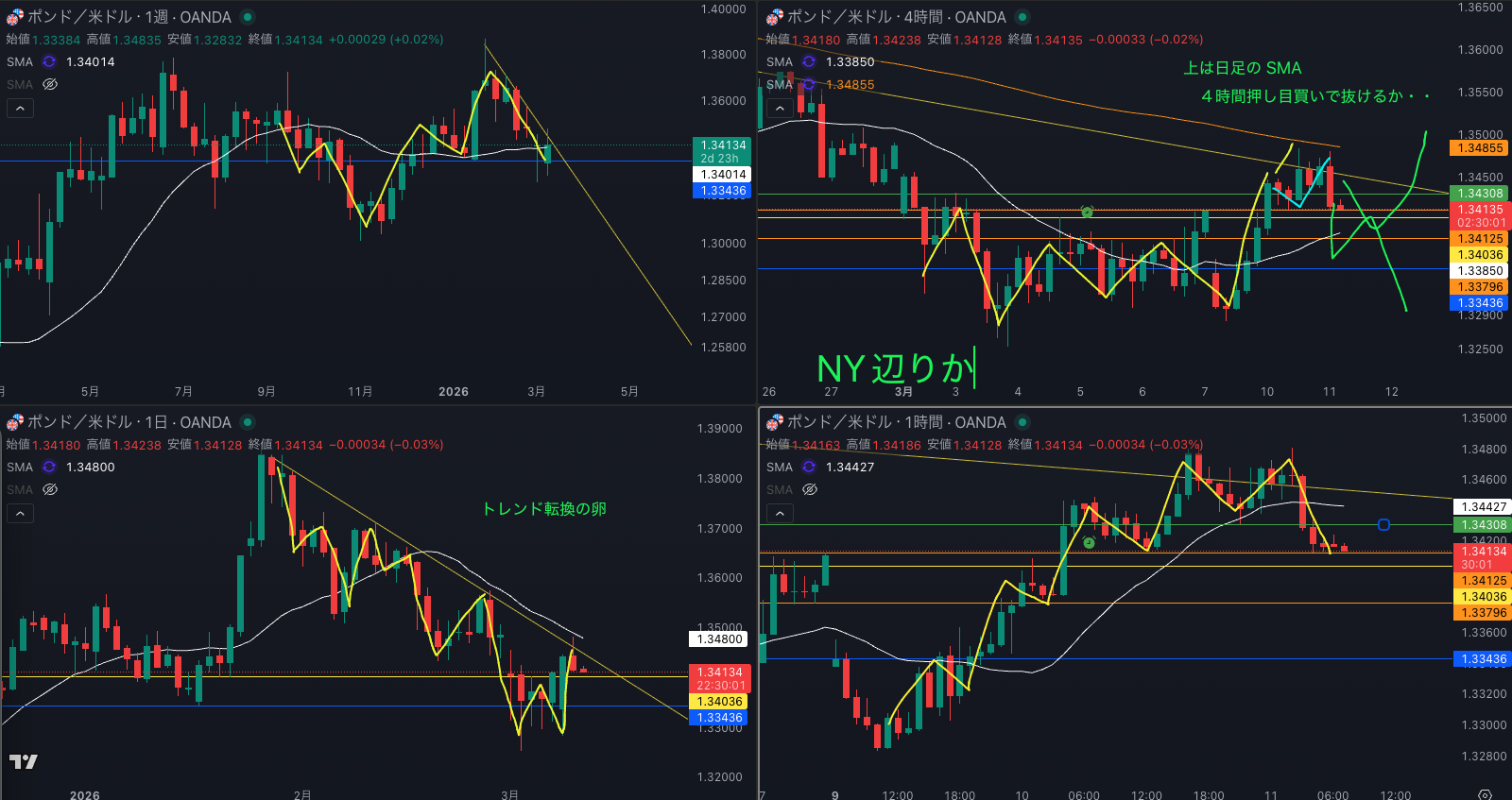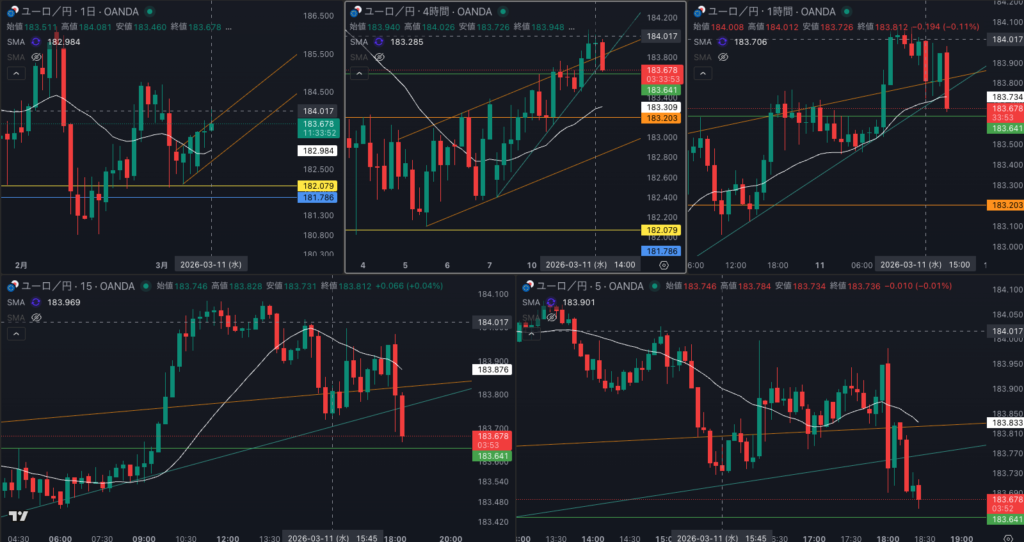 SMA・4時間SMA 上昇 から減速