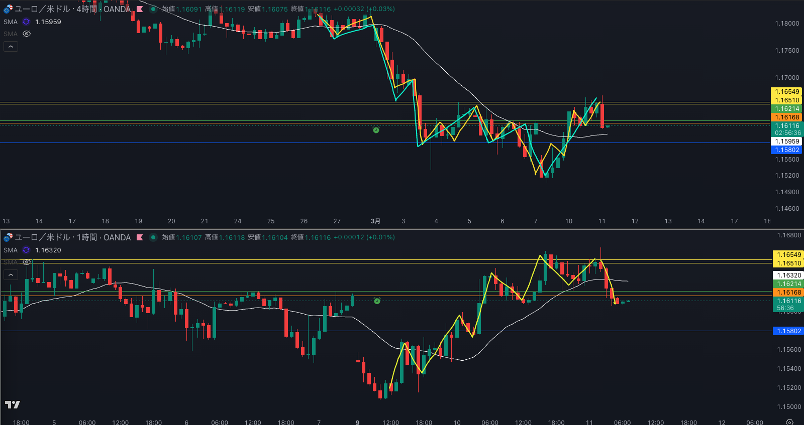 SMA・1時間SMAは上昇 買い支え