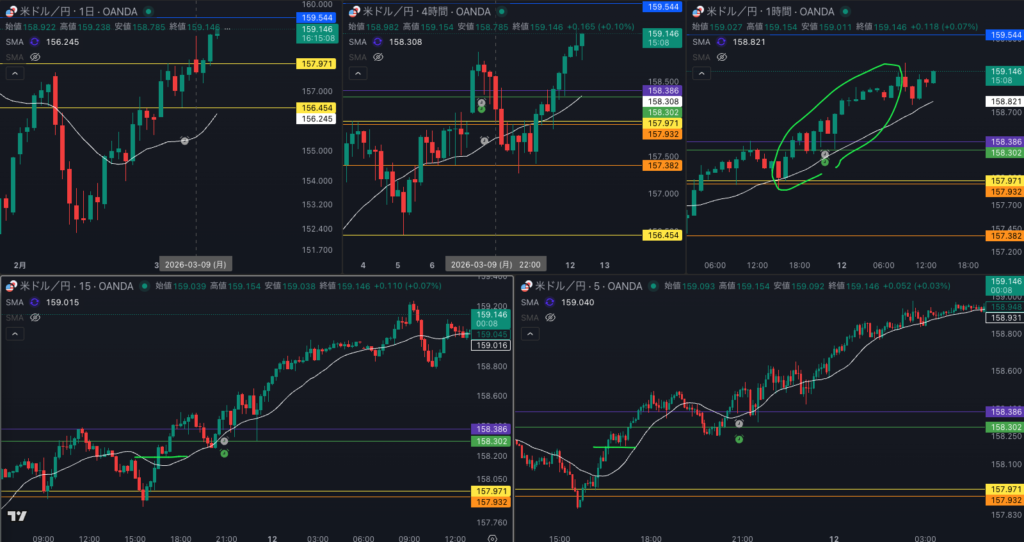 押し目買いエリアで4時間 SMAに支えられ日足のレジスタンスを試す
