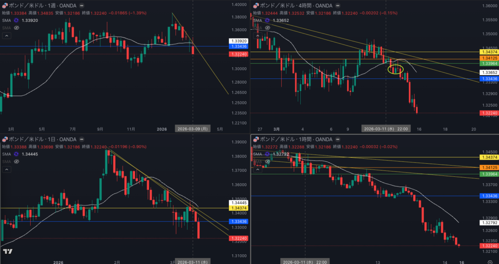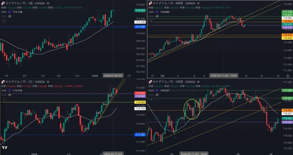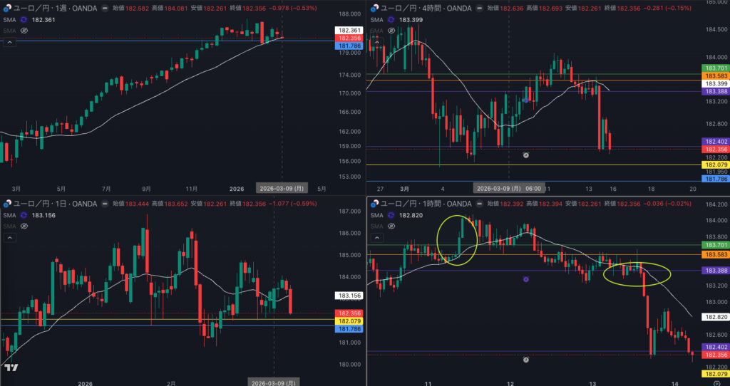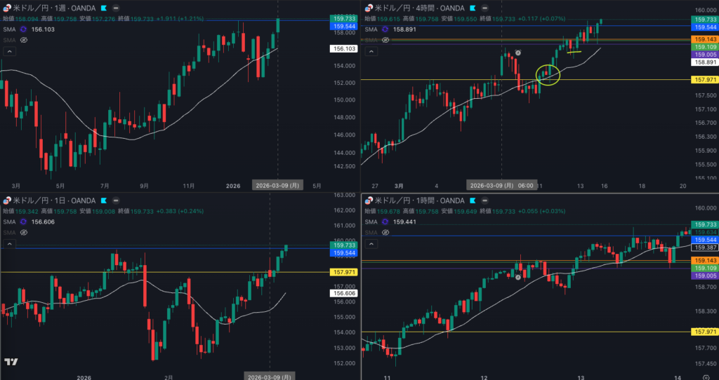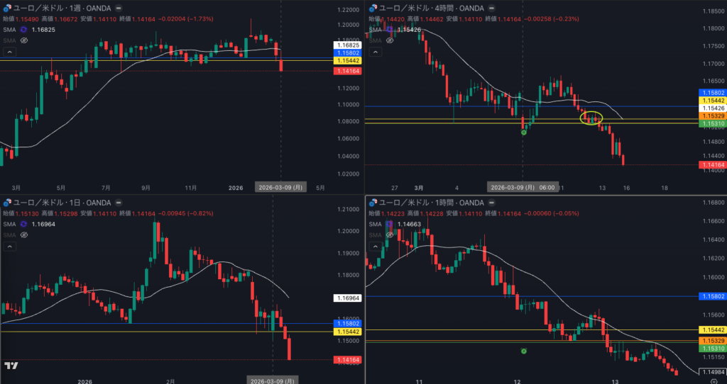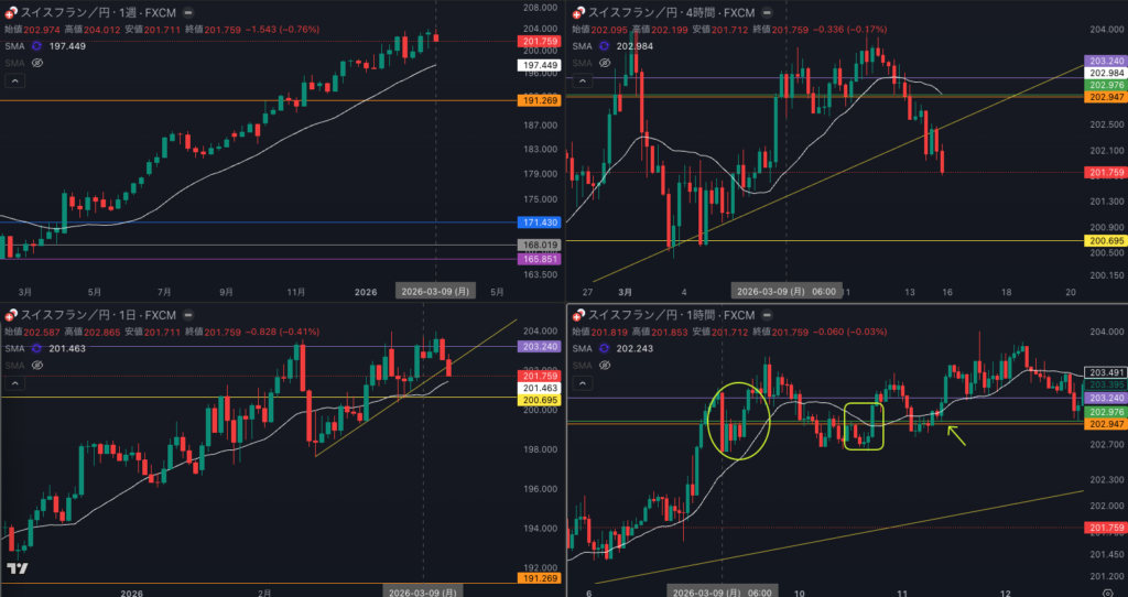 ちょうど日足週足 SMAがあったので4時間戻り狙い