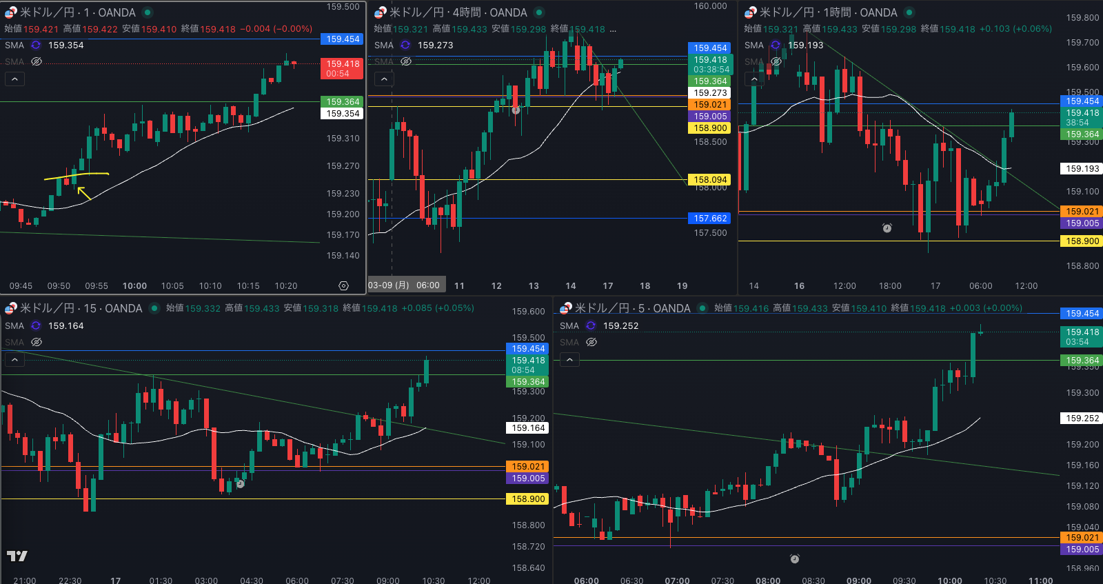 揉み合って 上抜け 4時間 SMAが無ければ