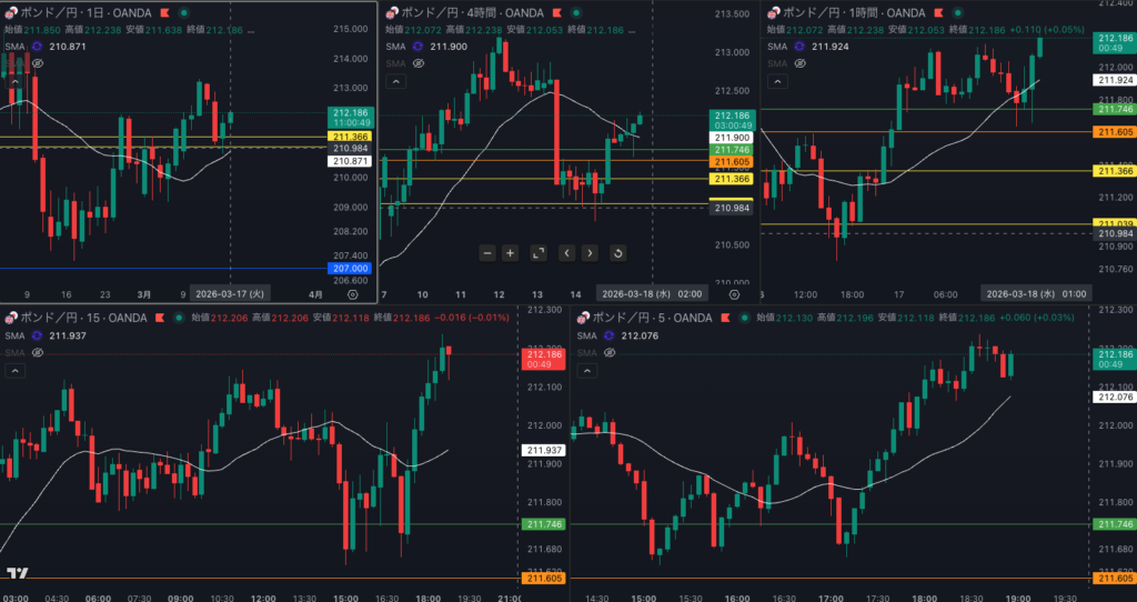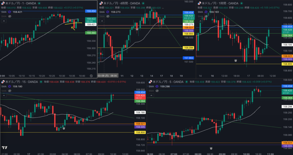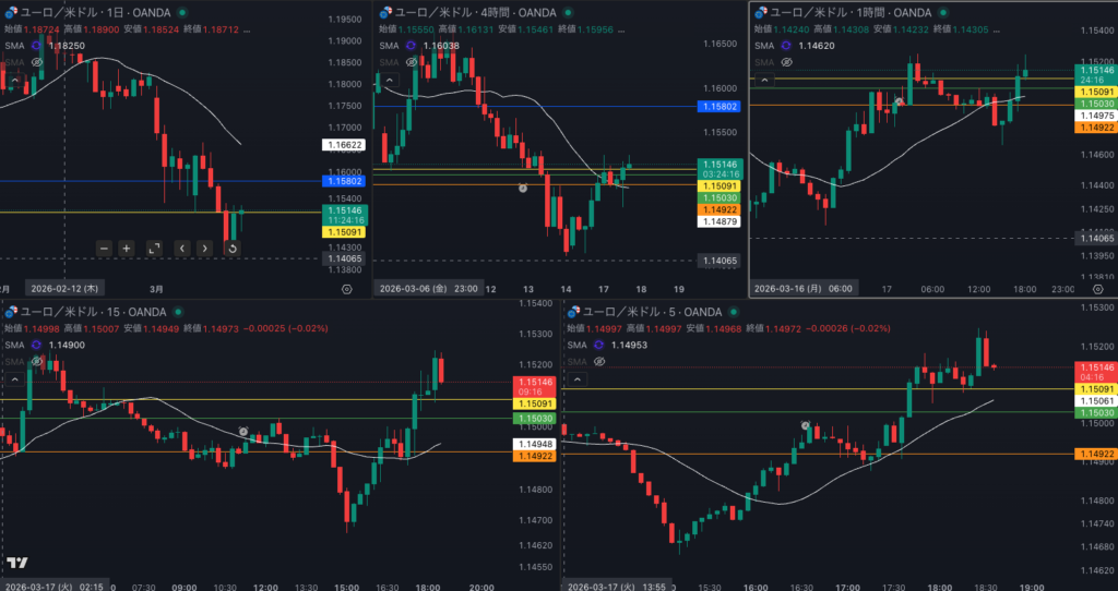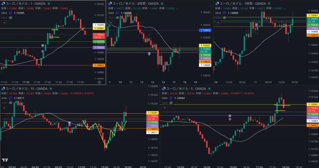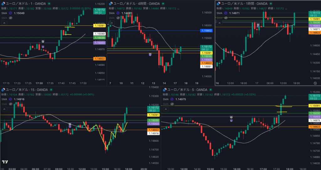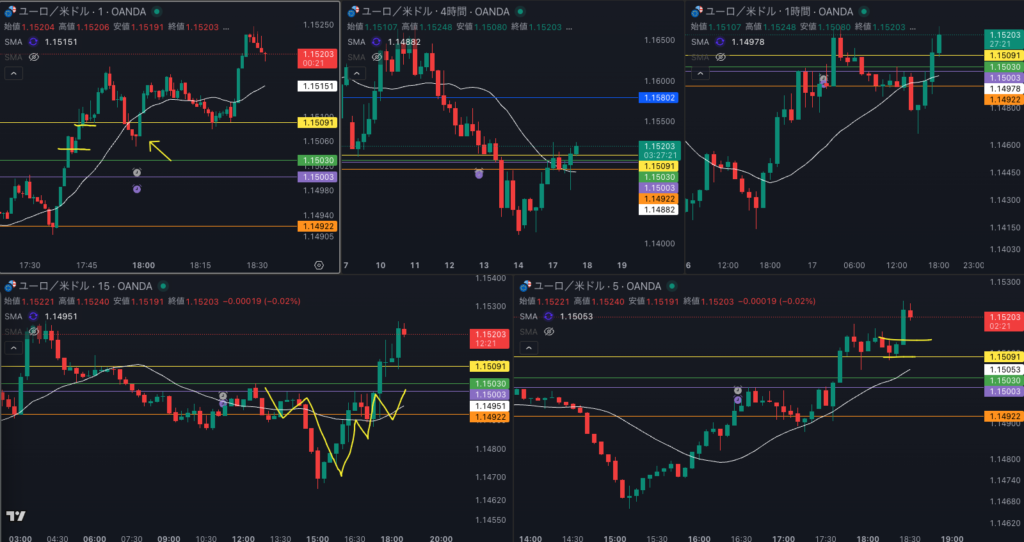 1時間 SMAを超えてきた 15分足トレンドフォロー
