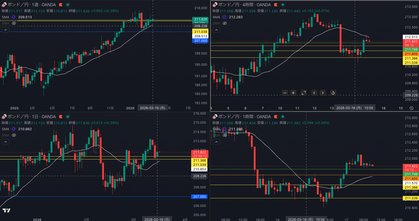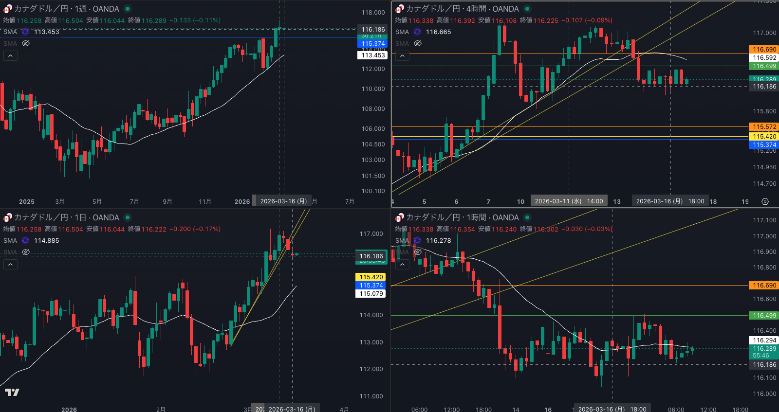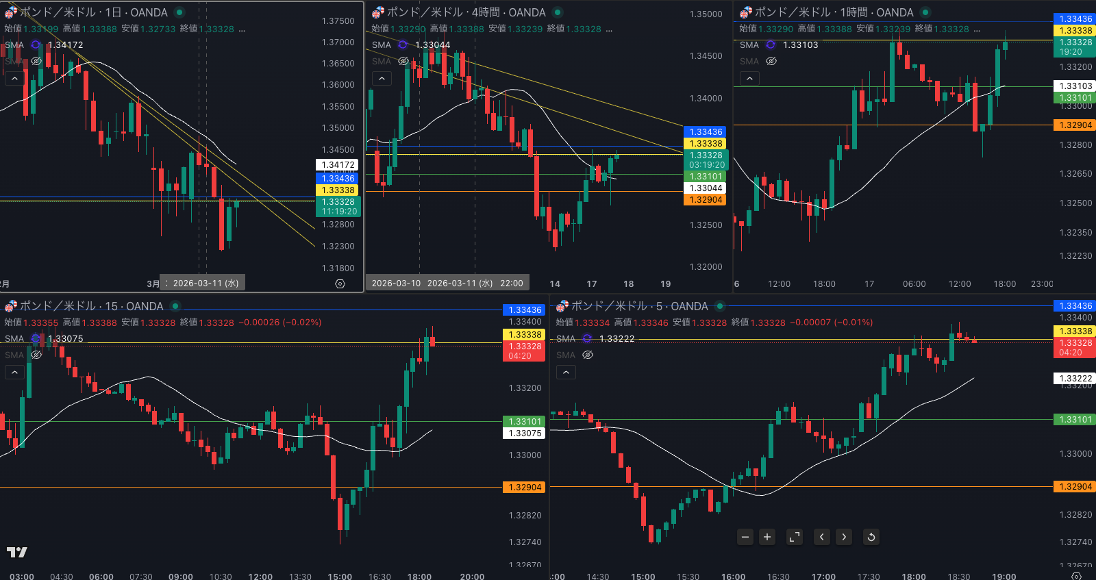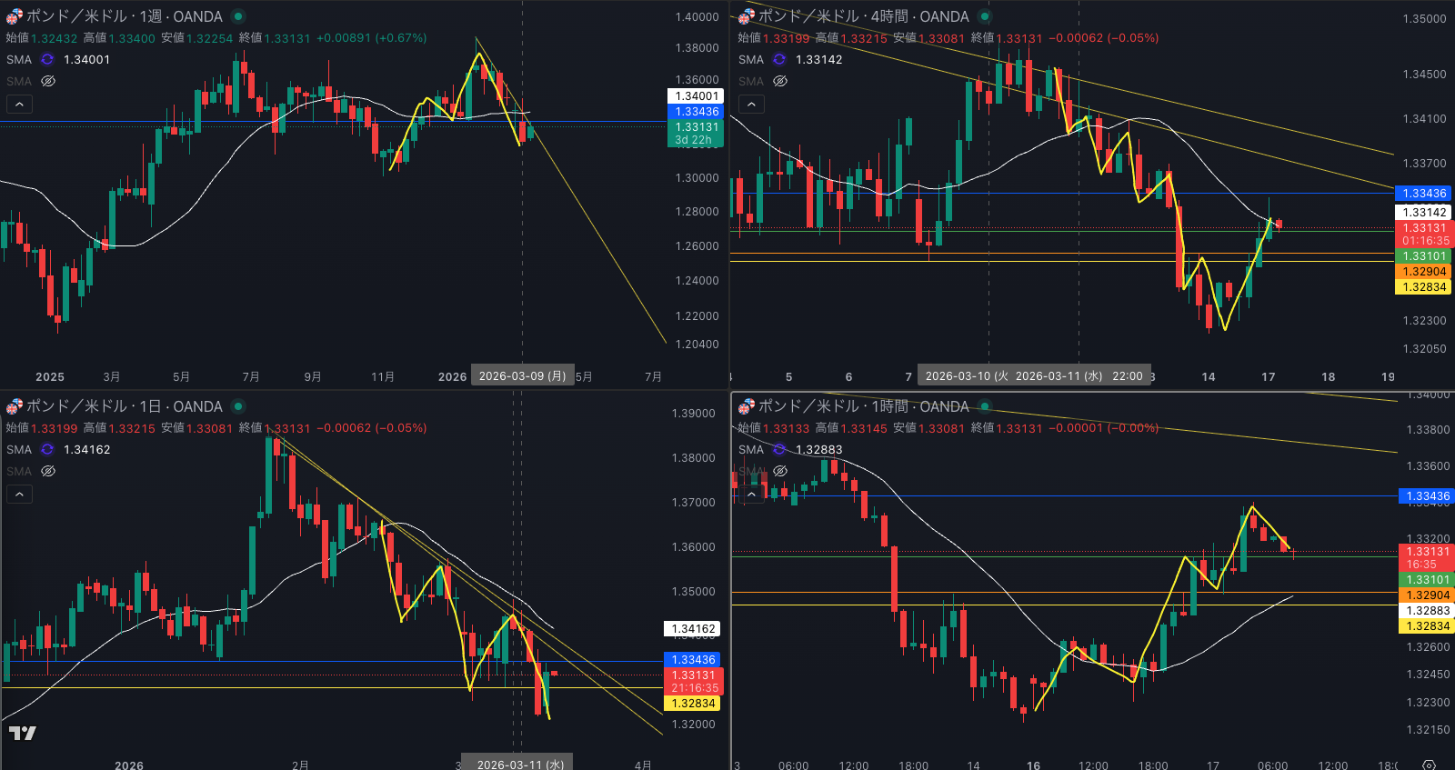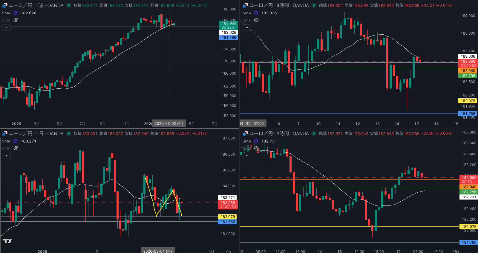 SMA・4時間SMAは 下降 売り抑え