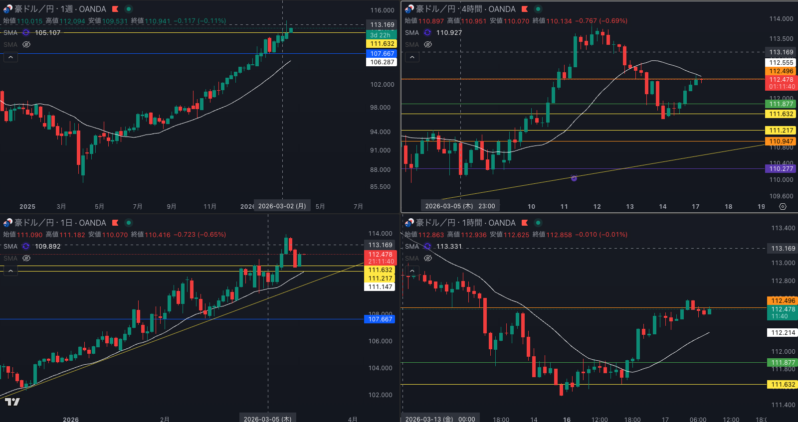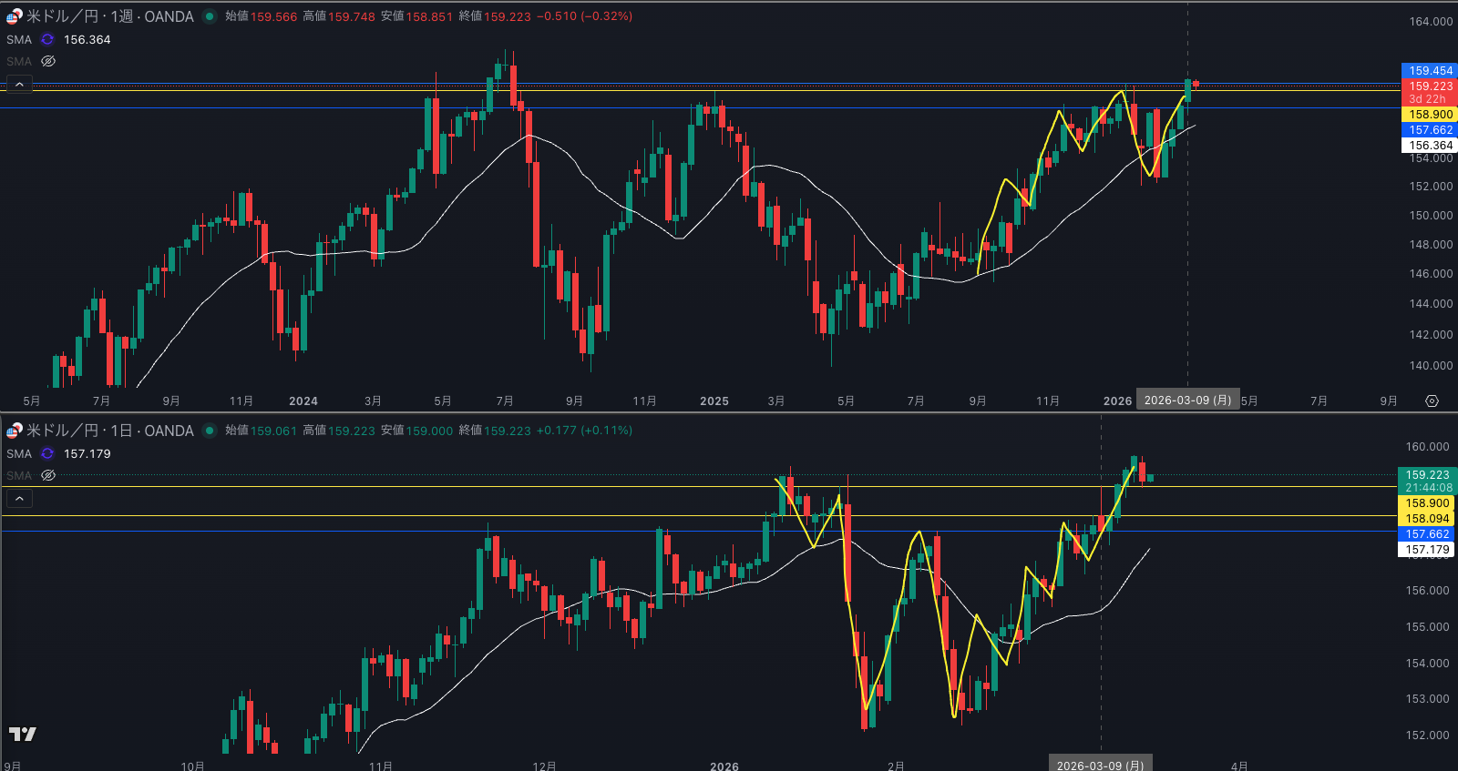 SMA・週足SMAは上昇