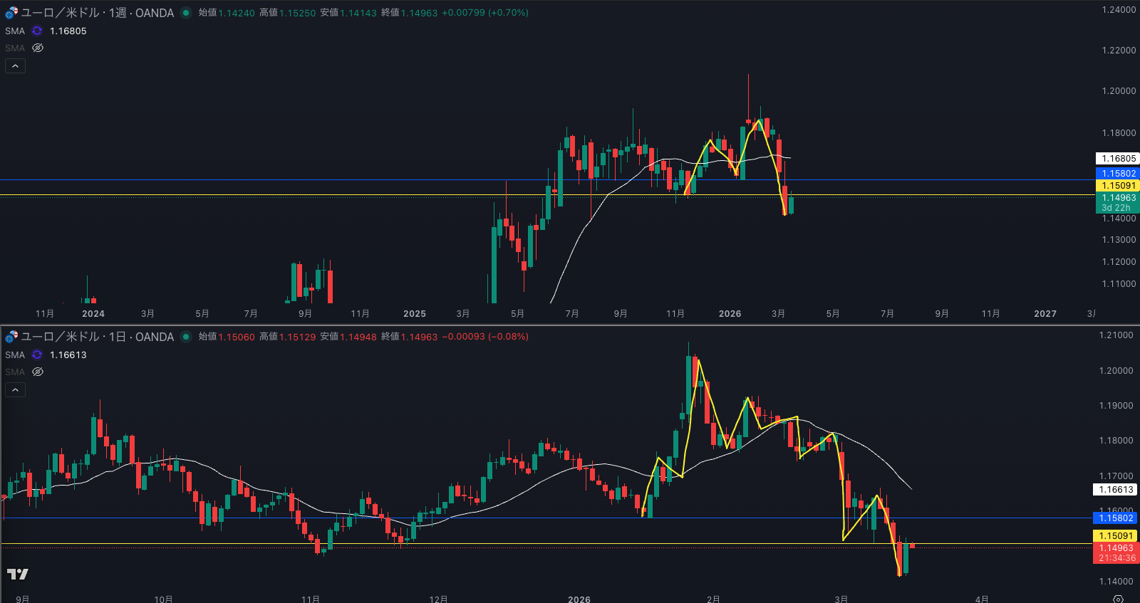 SMA・週足のSMAは横