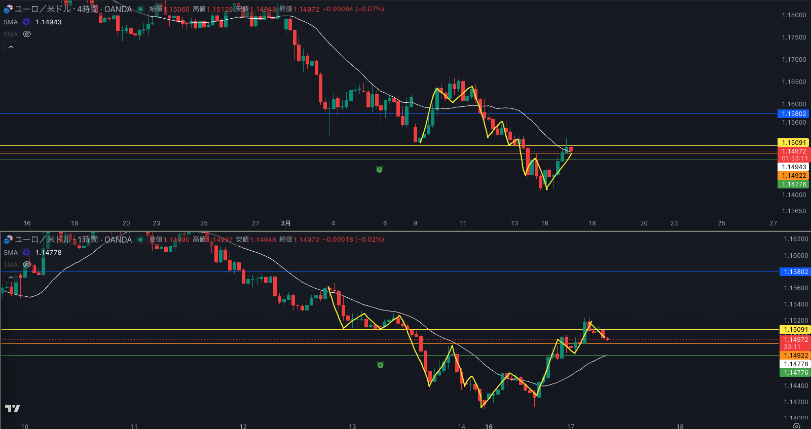 SMA・1時間SMAは上昇 買い支え