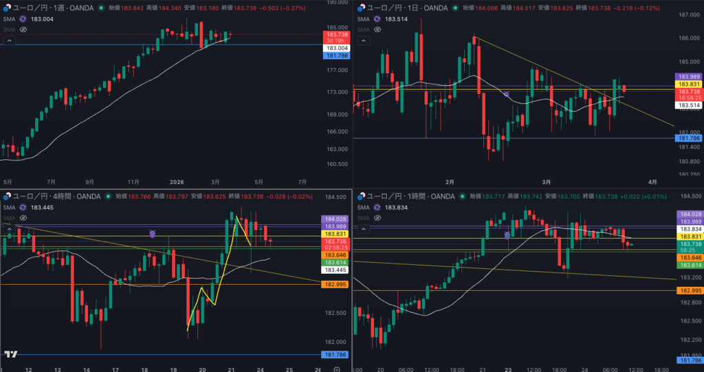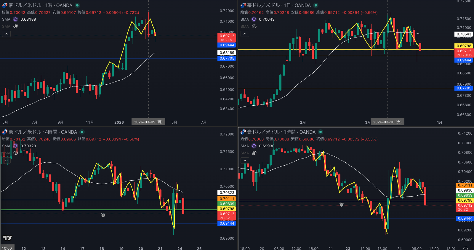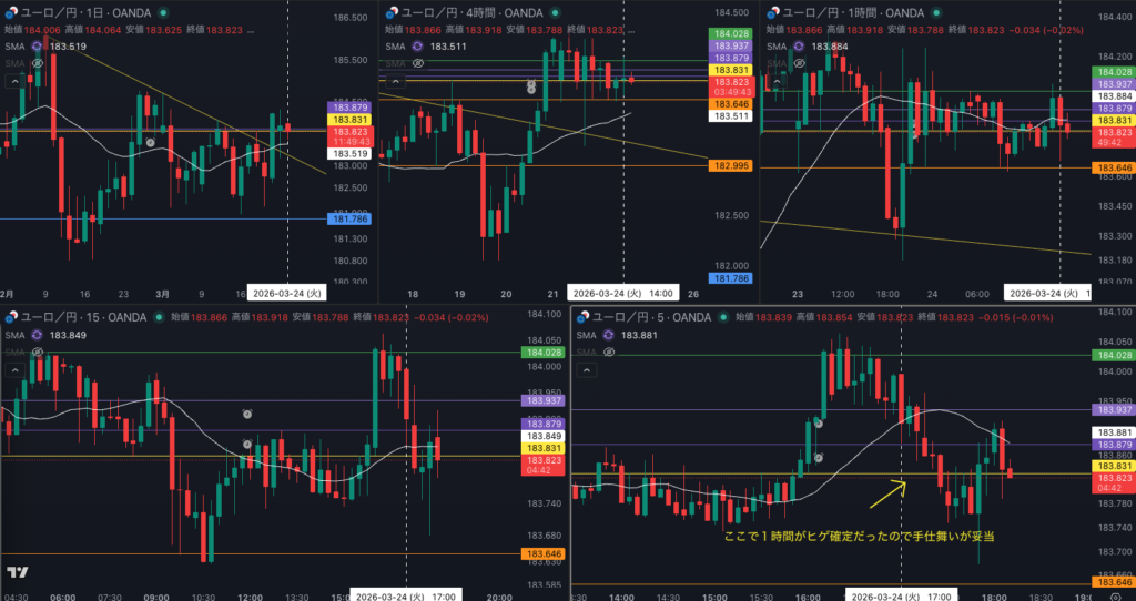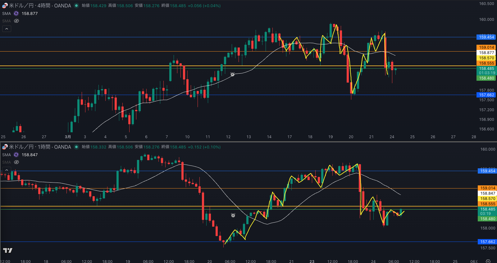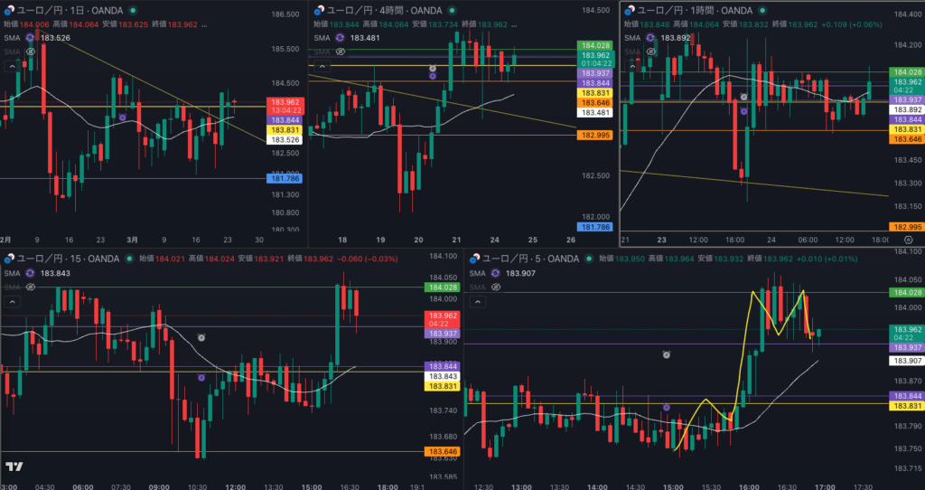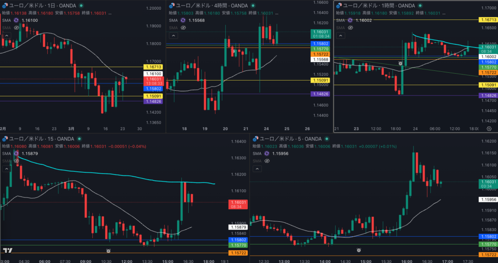 週足の目線が変わった辺りと日足 SMAが意識されているか - 4時間戻り売り