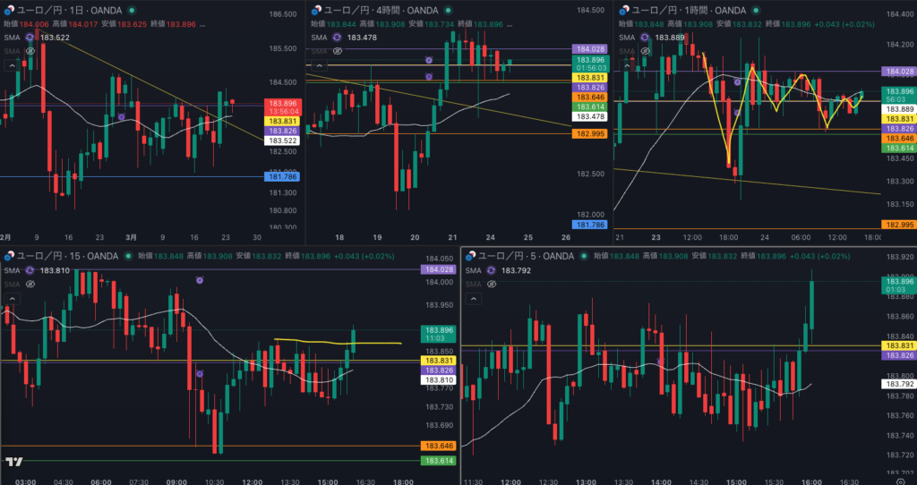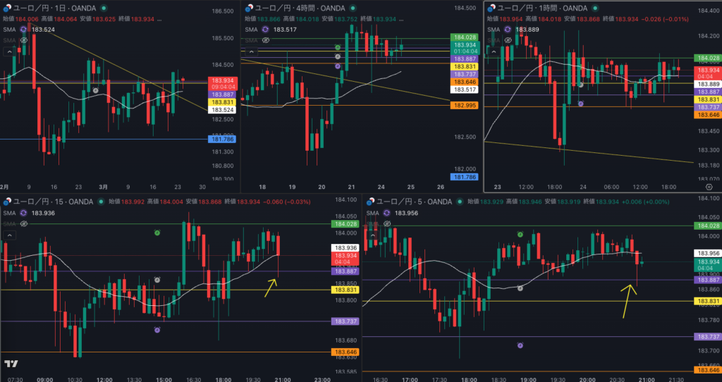 - 流れは 日足の全戻しの 下位足でのトレンドフォロー