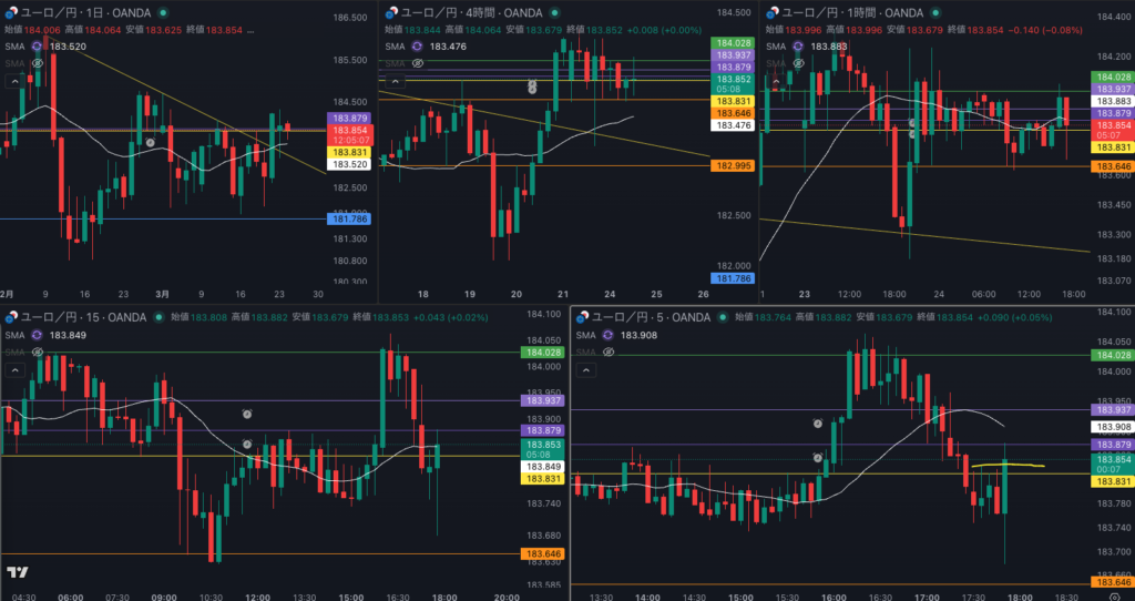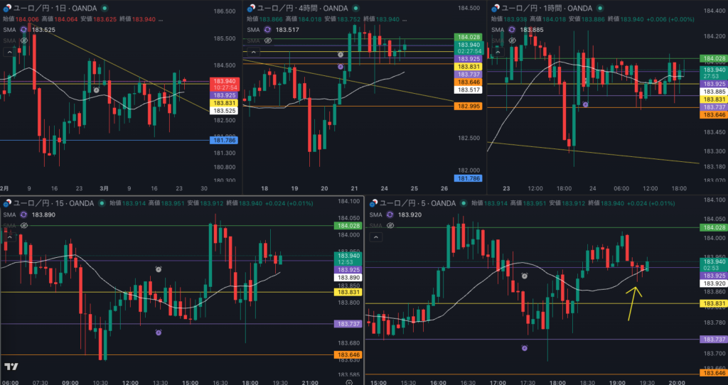 下位足のトレンドフォローを狙っていくか - 4時間は押し目買いだが 日足のsmaとの値幅がない
