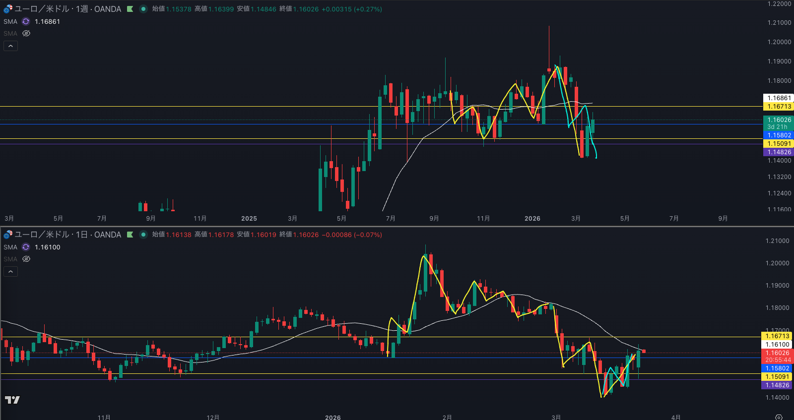 ・欧州時間 日足のsma 重たそう・・