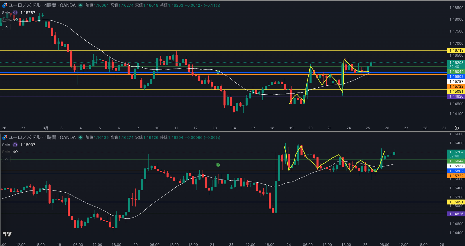 SMA・4時間SMAは 上昇 買い支え